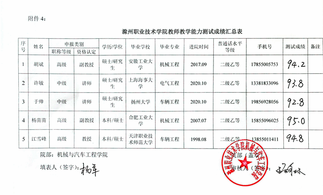 机汽学院2025年申报中、高级职称教学能力测评成绩如下,如有情况,请反馈至0550-3854554