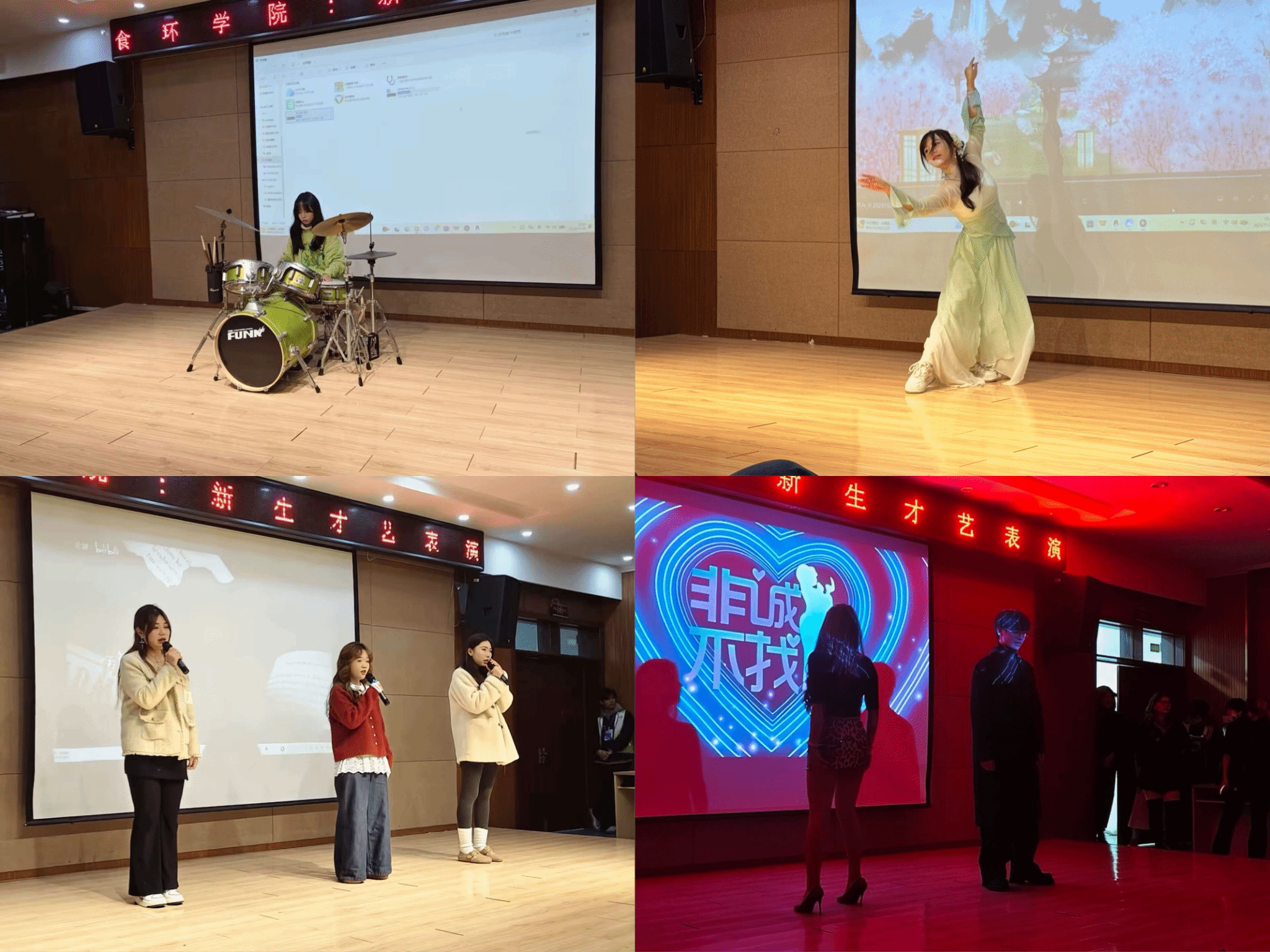 活动现场气氛热烈,掌声与欢呼声此起彼伏。参演新生们精神饱满、自信昂扬,带来了形式多样、创意十足的精彩节目:歌曲演唱环节,既有经典老歌的深情演绎,也有流行金曲的活力翻唱,学子们用清澈嘹亮的嗓音传递出青春的赤诚与热爱;舞蹈表演中,民族舞的典雅韵味、现代舞的创意表达交织碰撞,舞者们用舒展的肢体、饱满的情绪展现出蓬勃的朝气与活力;话剧与小品环节亮点纷呈,学子们以幽默诙谐的台词、生动形象的演绎、巧妙新颖的剧情设计引发全场阵阵欢笑,展现了食环学院新生多才多艺、积极向上的精神风貌。