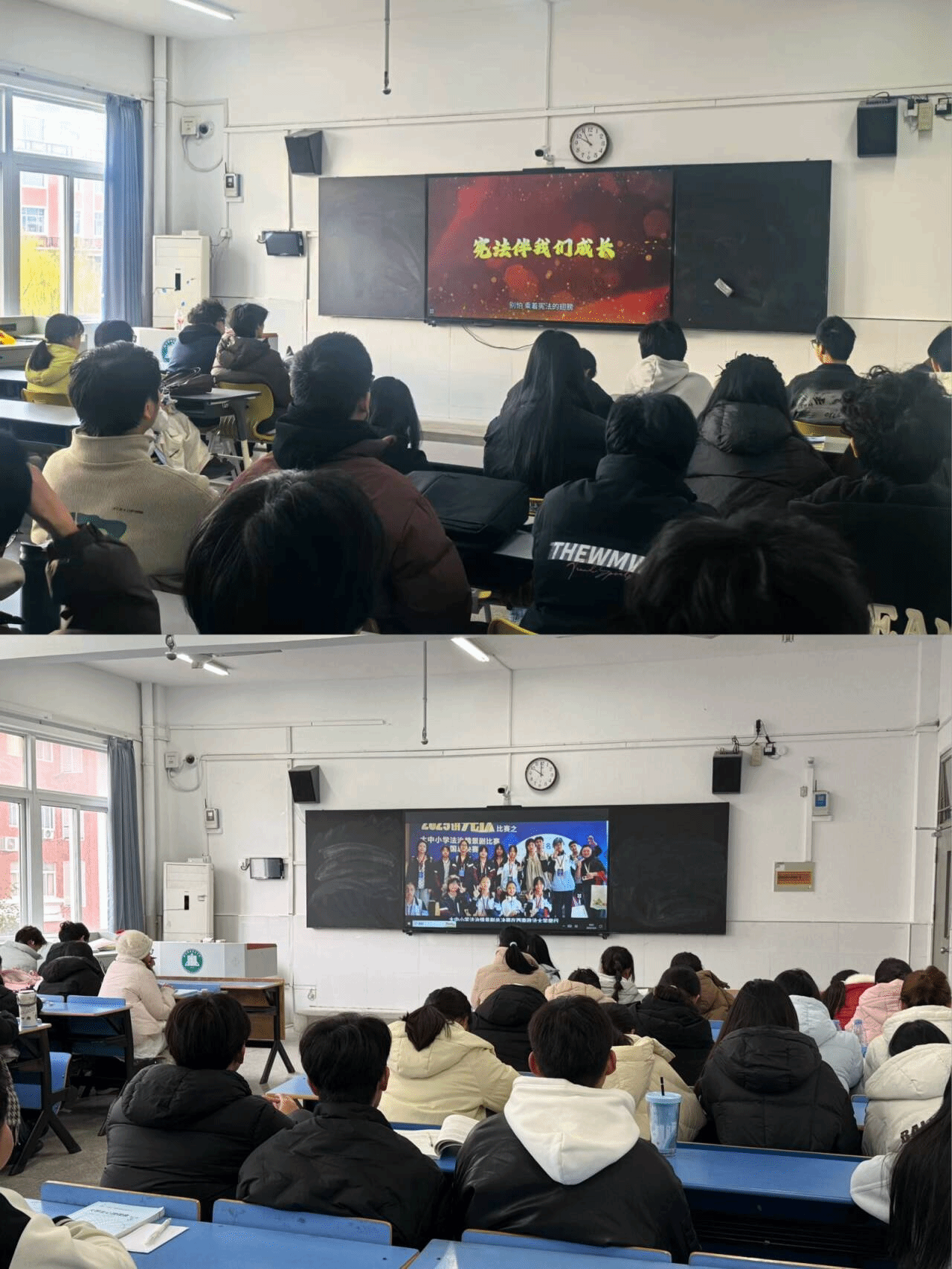 为深入学习贯彻习近平法治思想,全面落实安徽省教育厅关于加强青少年宪法宣传教育的工作要求,引导青年学生增强法治观念、树立宪法信仰。12月4日上午10点,食环学院组织25化工3班、25食检1班全体学生,在致善楼2302和2305多媒体教室通过教育部全国青少年普法网同步参与2025年国家宪法日教育系统宪法晨读在线直播活动,共同开启法治教育新篇章。