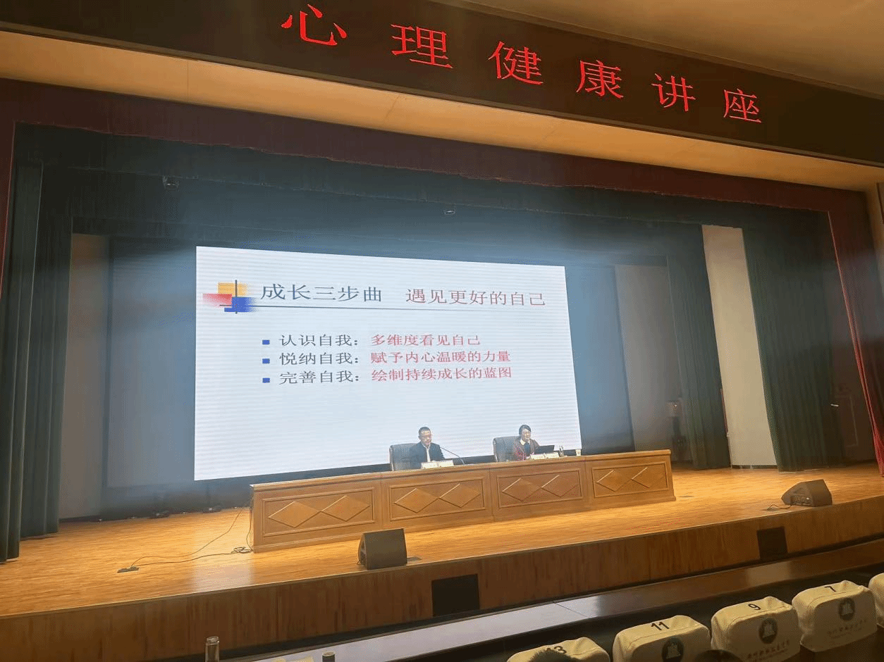 2025年11月28日下午四点,商学院党总支在6号实训楼报告厅举办了《成长,遇见更好的自己》专题心理健康讲座,讲座由安徽工程大学心理健康教育中心主任,三级教授,硕士生导师金艾裙教授主讲,校党委委员、商学院党总支书记李超主持,商学院全体教师和学生聆听了报告。