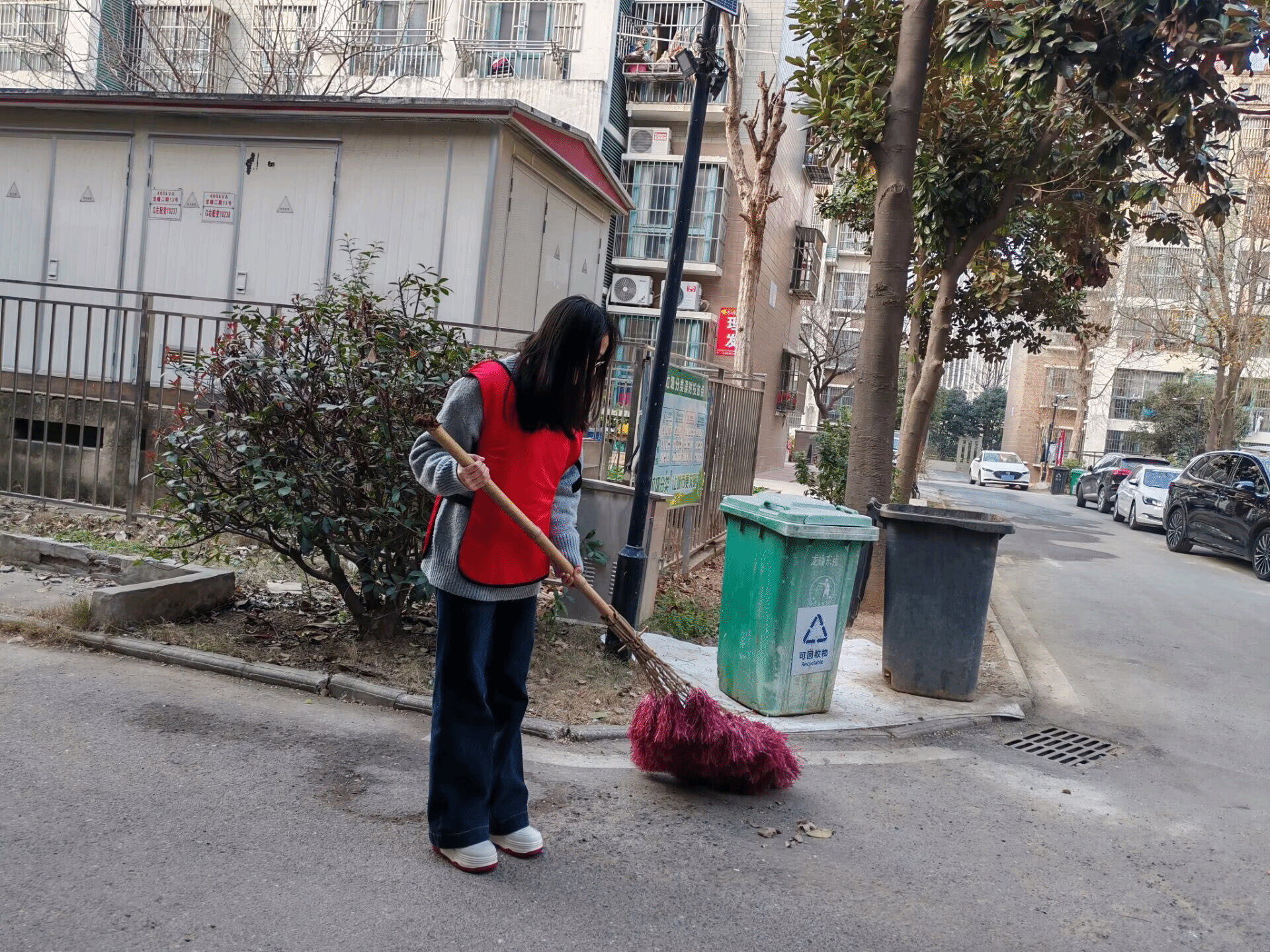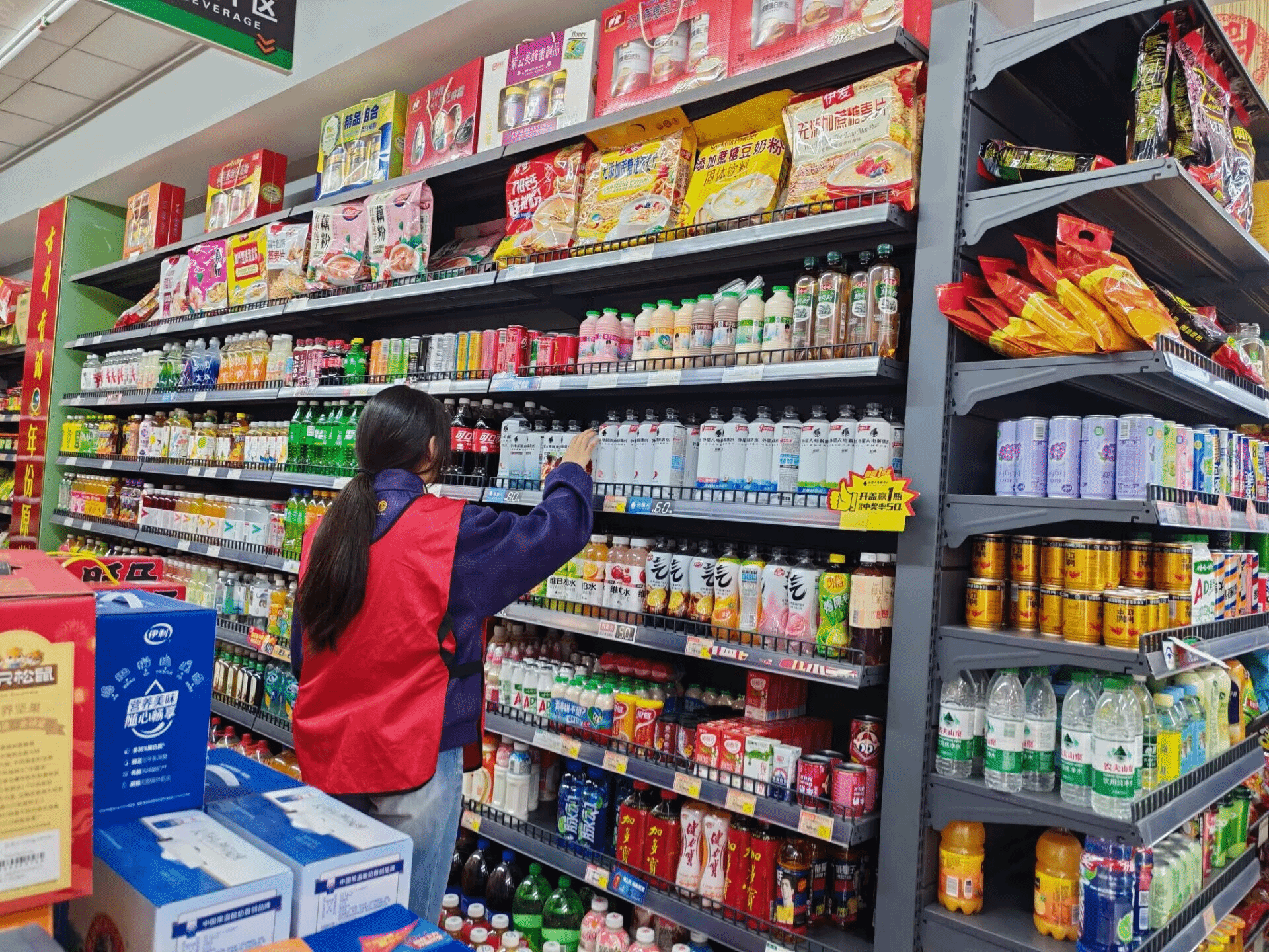 同学们身穿志愿马甲清扫街道、维护社区环境;在便利店化身理货员整理商品、核对信息;在商超收银台精准结算、耐心服务顾客。