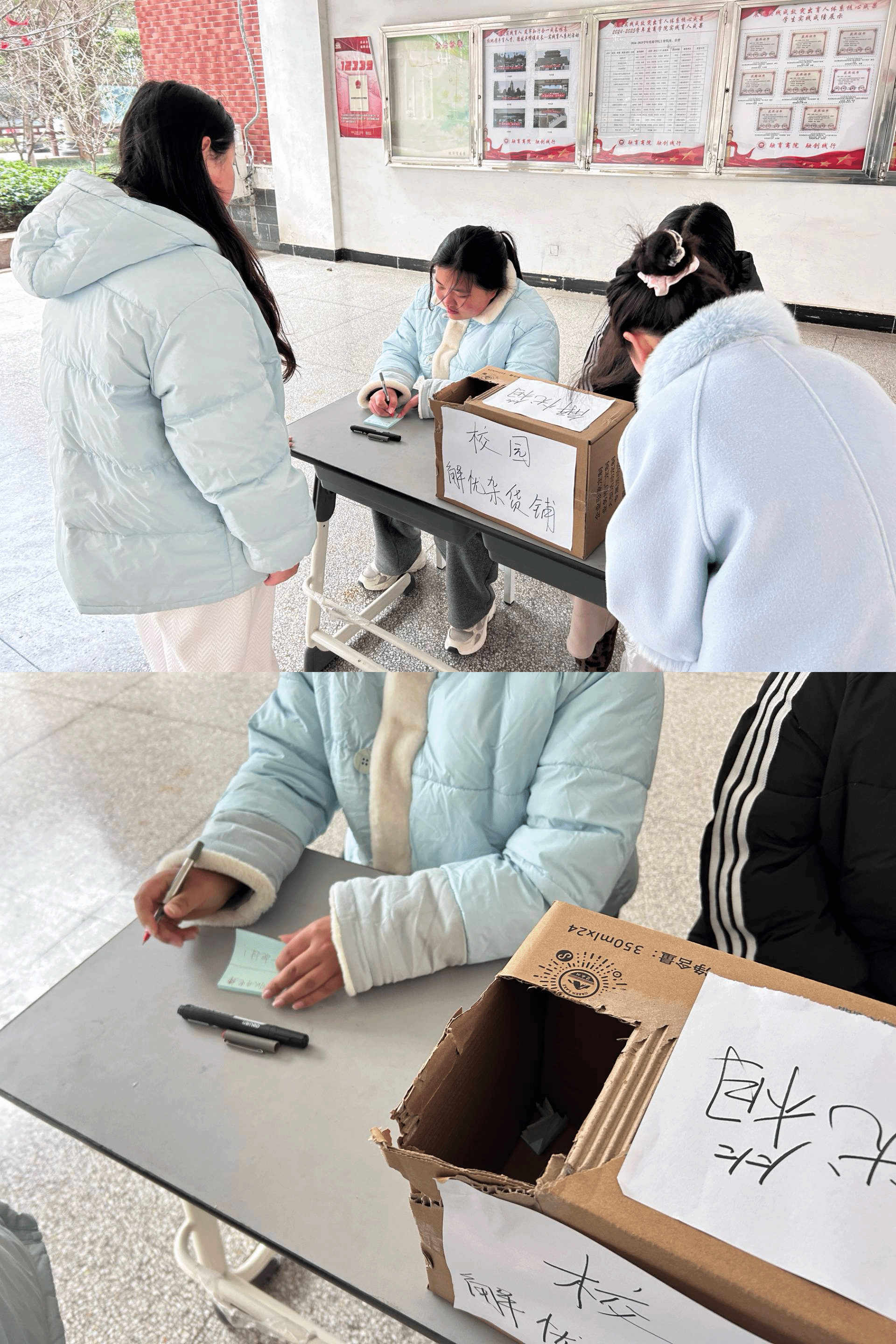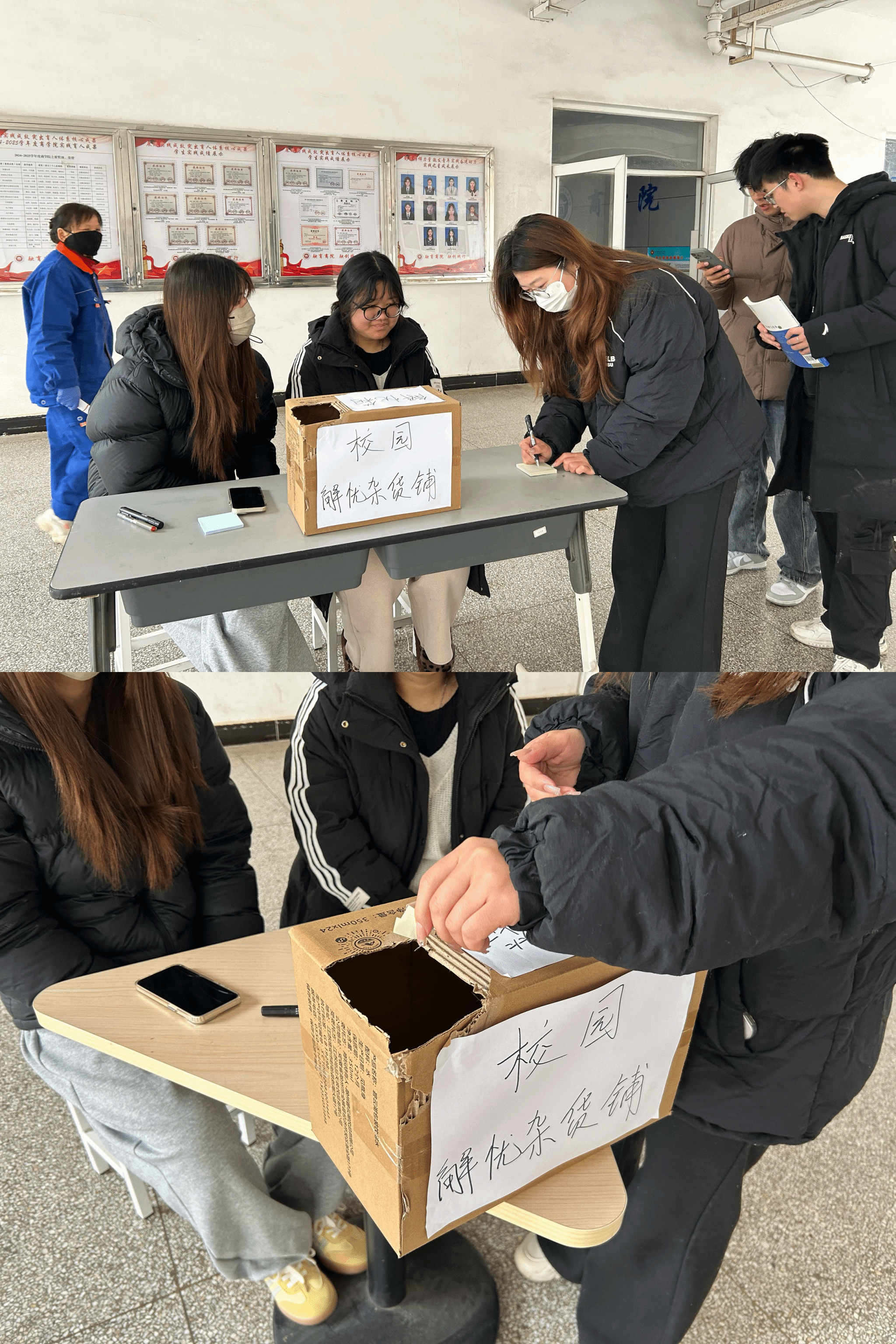 活动过程中,志愿者们坚守志愿初心,耐心引导同学们参与互动。同学们以匿名形式,将学习的困惑、生活的烦恼、成长的迷茫以及心中的小愿望逐一写在便签纸上,轻轻投入解忧信箱,在无声书写中释放情绪、倾诉心声;同时,大家也可随机抽取他人的纸条,用心写下温暖的鼓励话语、实用的建议,以匿名回应的方式传递善意、传递力量。一张张小便签,既是学子情绪宣泄的出口,也是志愿者们践行志愿精神的载体,更是陌生人之间暖心联结的纽带,让善意在校园中传递、让温暖在彼此间流淌。