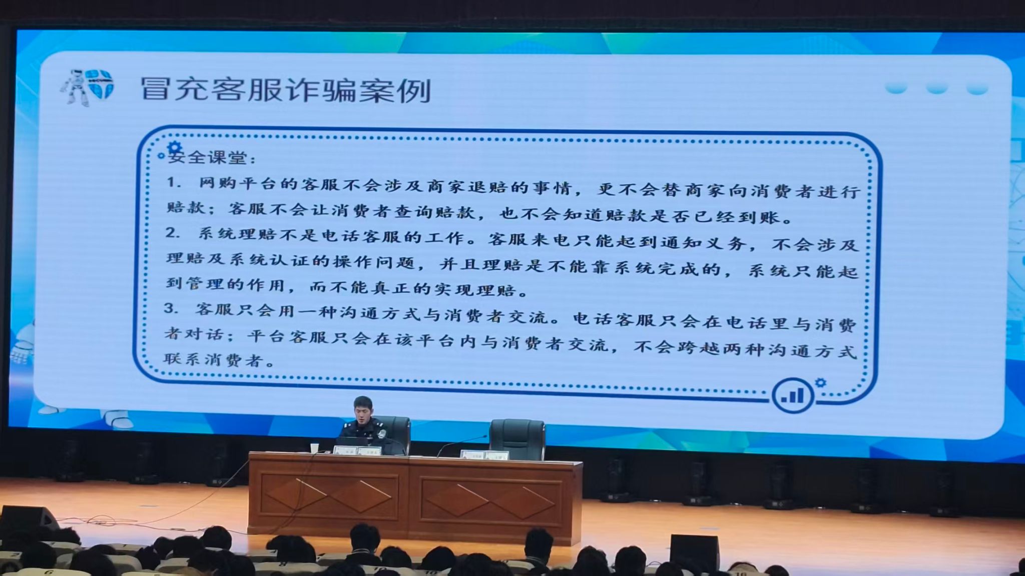 讲座中,刘警官结合大量真实案例,深入剖析“冒充公检法诈骗”“虚假购物诈骗”“兼职刷单