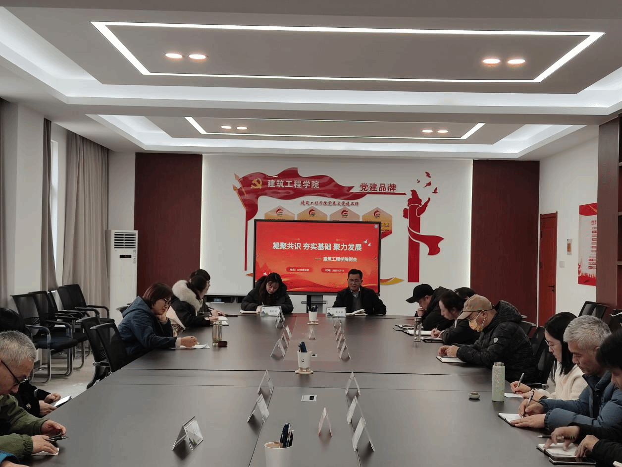 会上,朱永祥介绍了新任学院党总支副书记张文,并对她的加入表示热烈欢迎。随后,对学生日常教育管理、专业建设、毕业生实习、学院“十五五”规划、实验室建设等工作进行了部署。他强调,全体教职工要加强沟通和团队协作,要进一步增强责任感、使命感和紧迫感,要有担当,以更加饱满的热情、更加昂扬的斗志、更加务实的作风,凝心聚力,锐意进取,共同谱写建筑工程学院发展的新篇章!