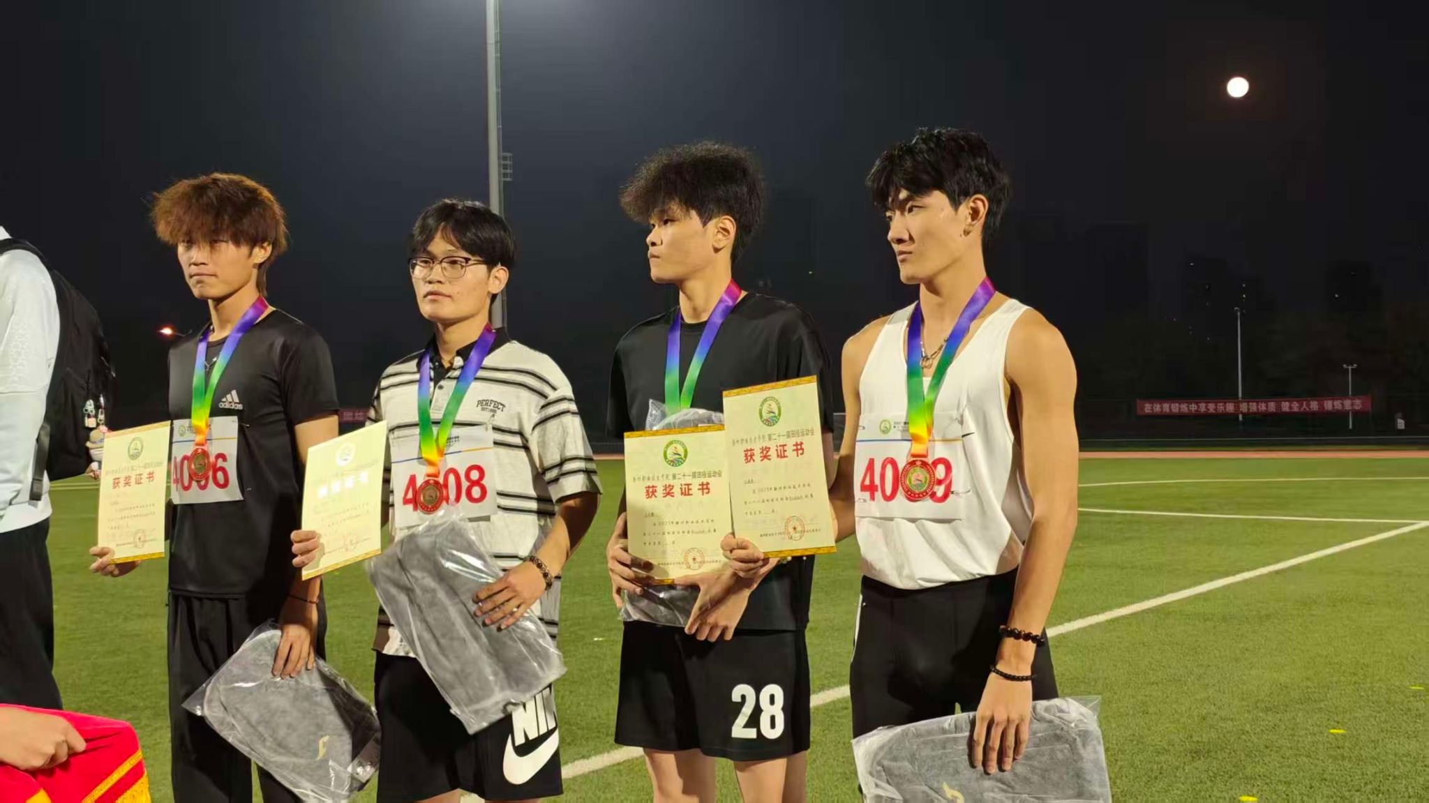 赛场上,竞技风采与团队魅力交相辉映。广播体操比赛中,全体队员精神抖擞、动作规范整齐,凭借饱满的热情和出色的表现力压群雄我院斩获广播体操第一名。田径赛场上,男子100米赛道上,刘继武奋力冲刺,夺得亚军;吴杨凡在男子200米赛场获得亚军;男子400米角逐中,王昊宇顶住压力,斩获季军。男子4×100米接力赛上,队员们默契配合、奋勇争先,最终拿下亚军荣誉。长跑赛场上,潘正豪尽显耐力与毅力,一举包揽男子1500米、3000米双冠军;女子3000米比赛中,巩宝欣坚持不懈,夺得亚军。田赛赛场上,陈浩在男子铅球项目中力压群雄,摘得冠军;男子跳远赛场竞争激烈,刘继武获亚军、纪朝阳获季军。