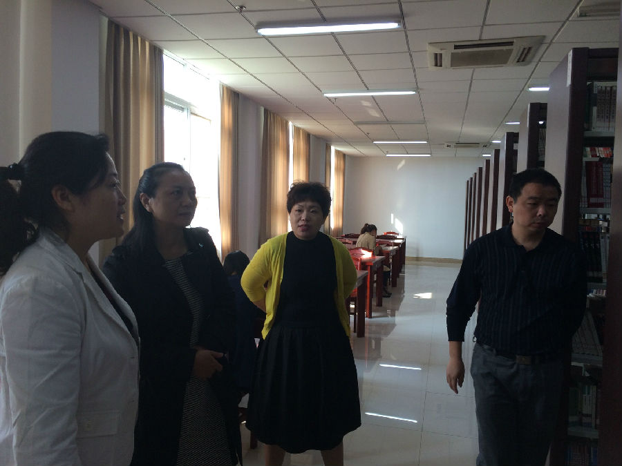 10月15日上午九时许,滁州城市职业学院图书馆马馆长携图书馆王老师、曹老师、姜老师一行来我馆参观考察。盛丽蓉馆长与采编部李老师全面细致的为马馆长等介绍我院图书馆的建设情况,并陪同马馆长一行参观了图书借阅室和阅览室。