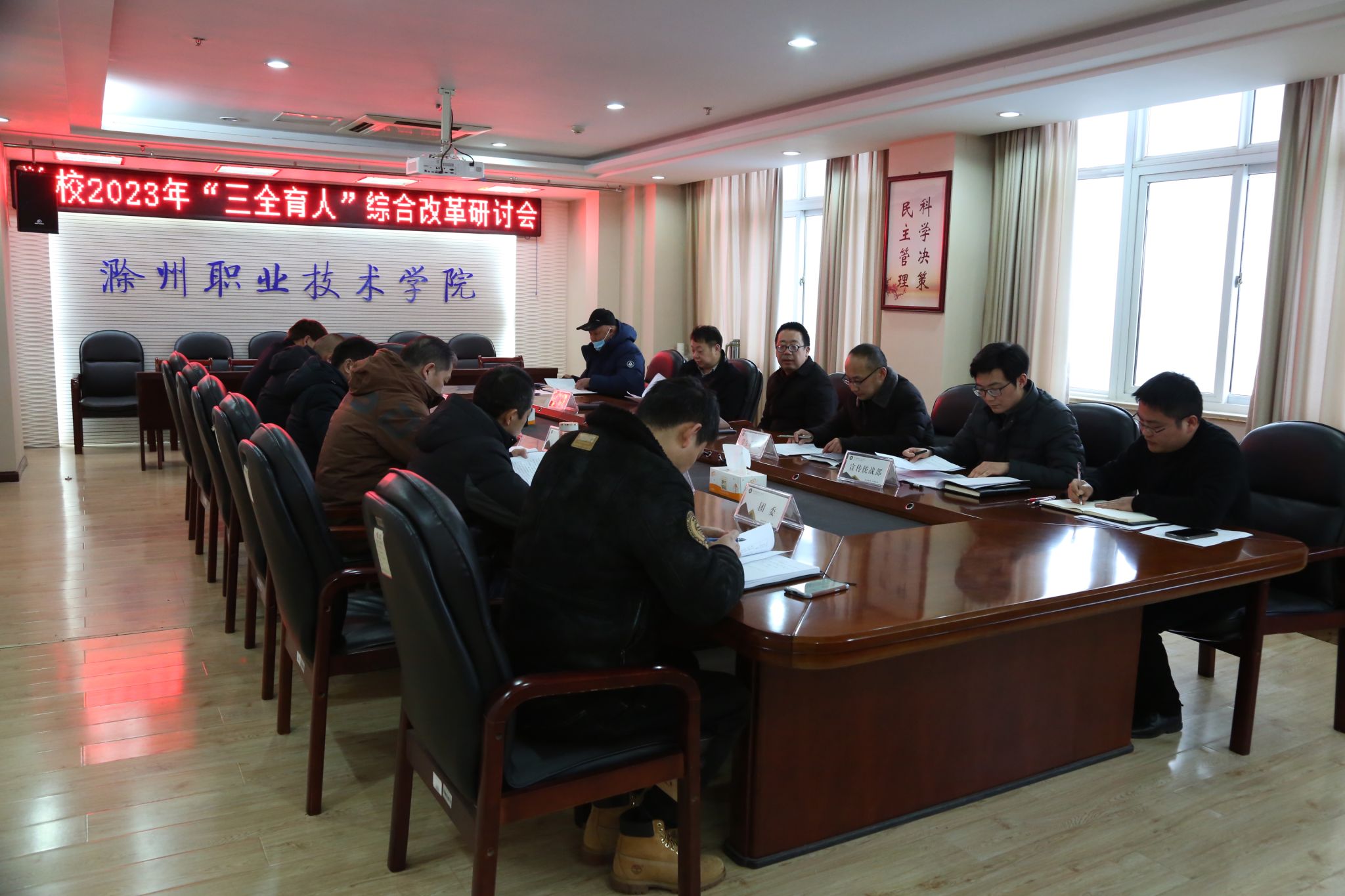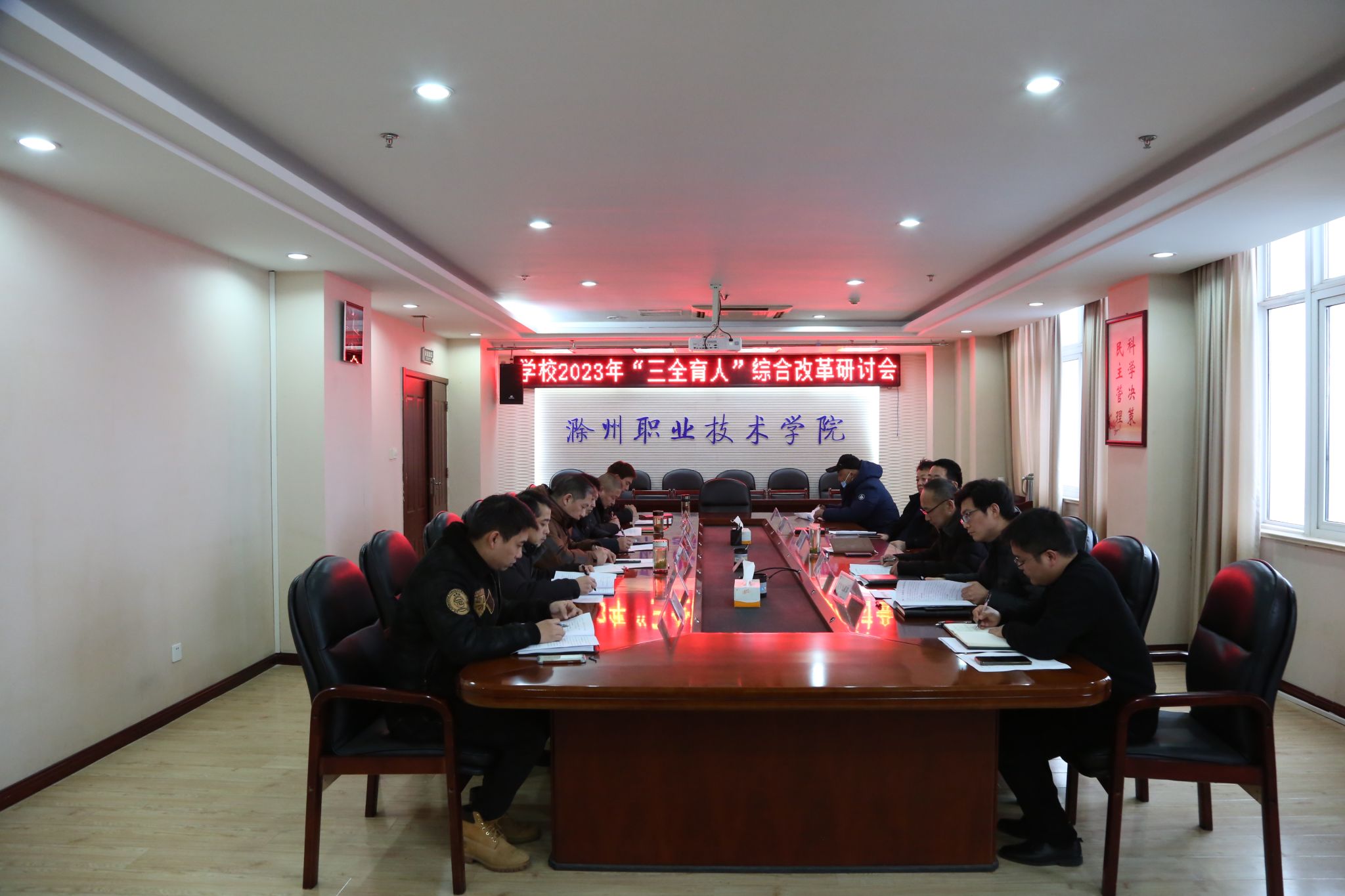 2月6日下午,学校在综合楼804会议室召开2023年“三全育人”综合改革工作研讨会议,校党委副书记杨家庆主持会议并讲话。校党委委员、宣传统战部部长李平权、办公室、宣传统战部、组织人事处、教务处、学生工作处、科技处、招生就业处、后勤服务中心、马克思主义学院、团委主要负责同志出席会议。