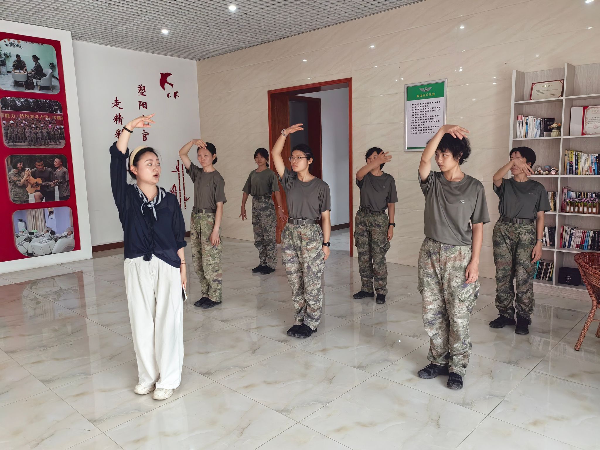 本次培训在校党委副书记杨家庆指导下召开专项会议研究部队提出的实际需求,由学生工作处牵头对接协调,办公室、团委、基础教学部、管理学院等部门协同配合,历时三周,开展了声乐、舞蹈、心理健康教育类小游戏、小活动等方面的培训指导。参训官兵兴致高昂、认真学习、勤加练习、收获满满,系列培训活动圆满完成。