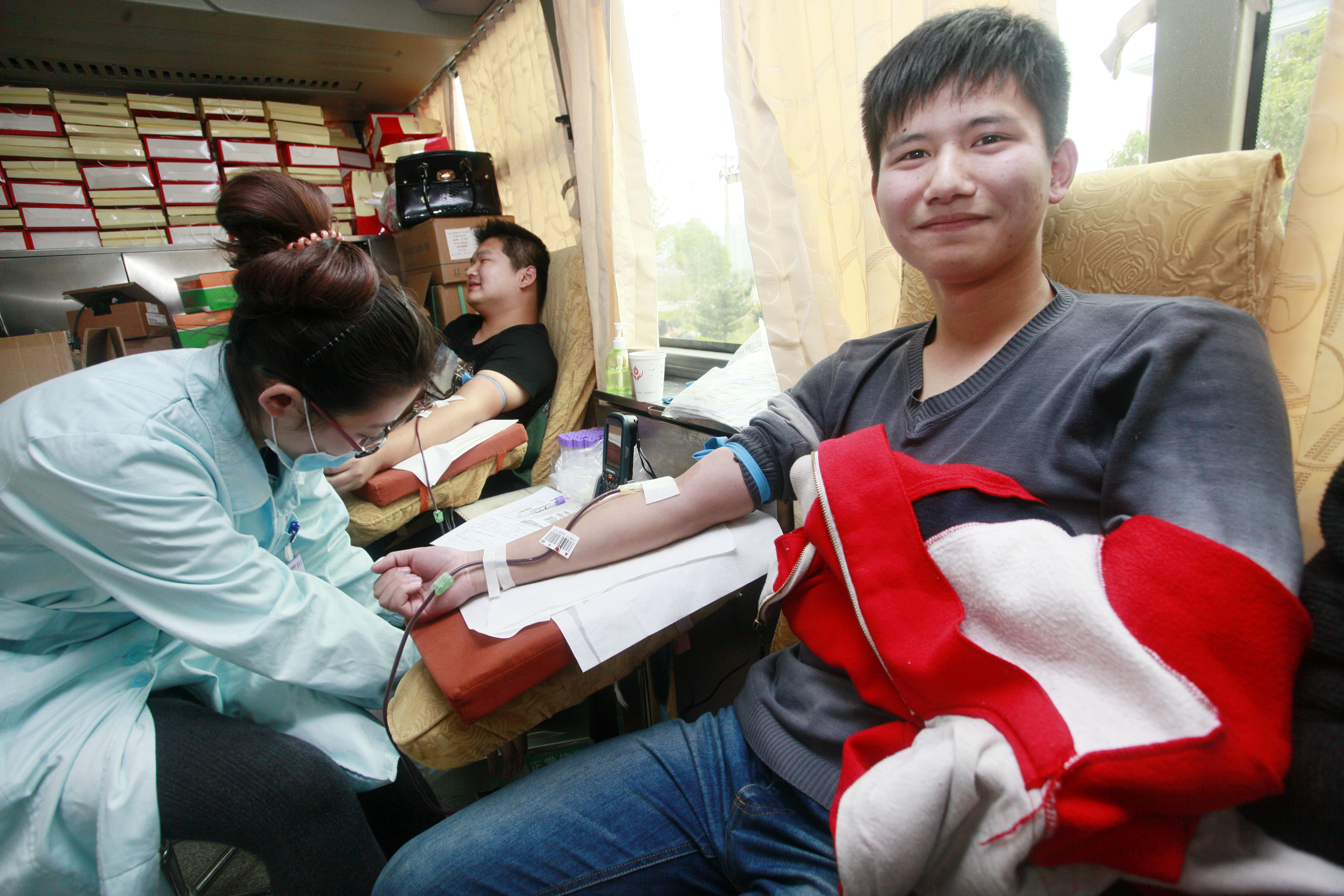 11月13日下午,滁州市中心血站的两辆采血车开进滁州职业技术学院采血。参加献血的同学早早等候在食堂南门广场,排起了长长的队伍。在学生干部的组织下,同学们秩序井然的填表、量血压、验血型、献血、领取献血证。许多同学都是第一次献血,刚开始有些紧张,但在医护人员的鼓励下,渐渐地放松了,都能坚持按要求完成献血。献完血的同学都纷纷表示,以后有机会还会积极参与。