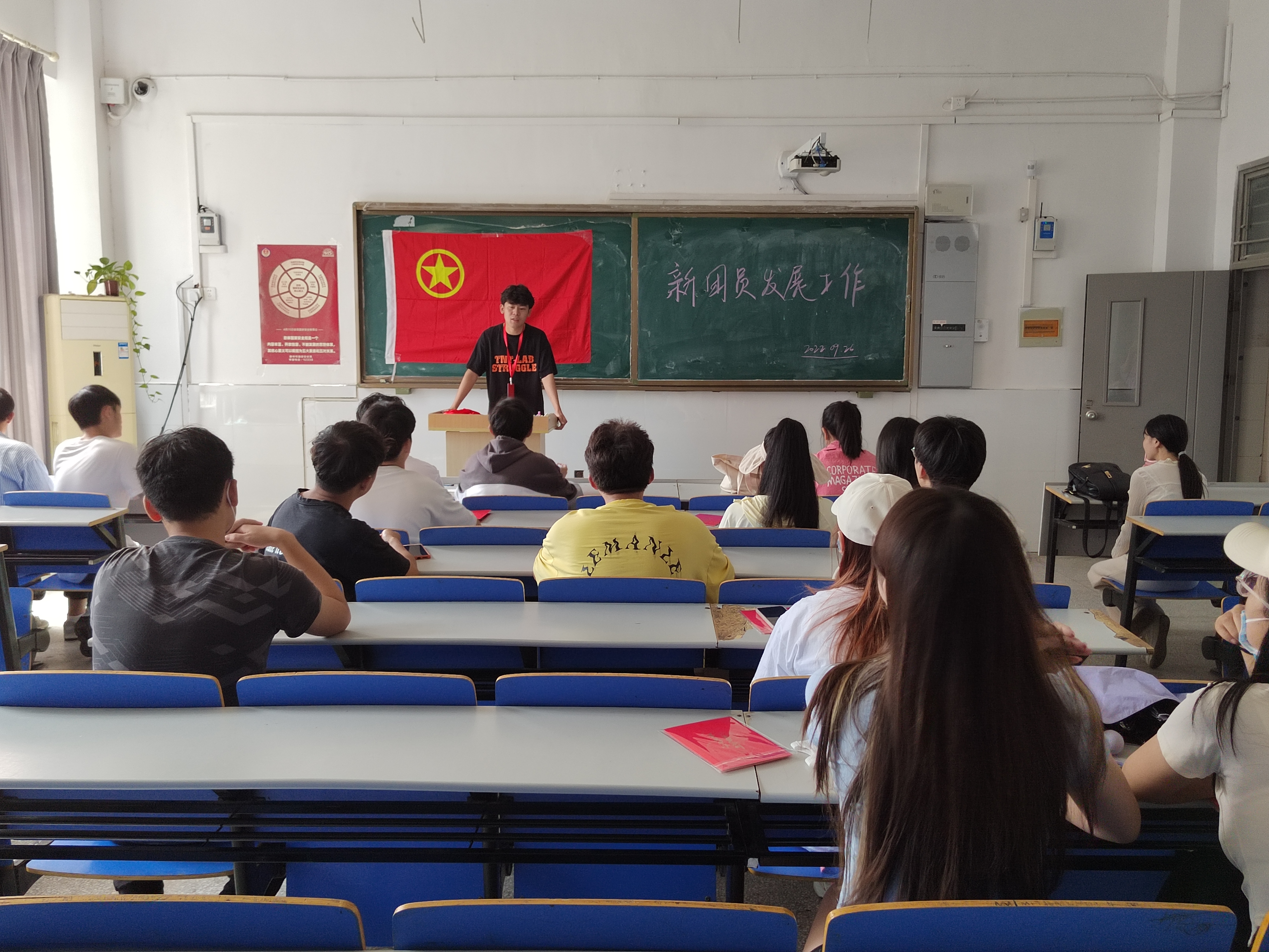 为了加强学校共青团队伍的建立,增强大学生的进取精神。9月26日中午12:30,信息工程学院团总支在2号楼2111教室开展新团员发展工作会议活动,学院团总支副书记王乐、21级各班级团支书参加了此次活动。