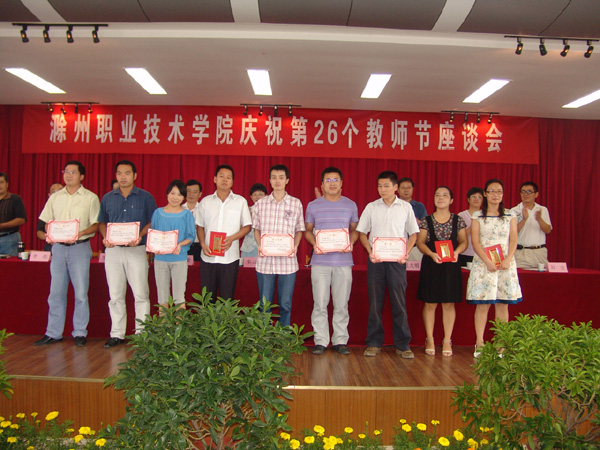 9月8日下午,在教师节来临之际,滁州职业技术学院庆祝第26个教师节座谈会在多功能厅隆重举行。大家欢聚一堂,共庆教师光荣节日,共谋教育发展大计。滁州市人民政府副市长朱云霞到会祝贺并作重要讲话,院党委书记沈中林、院长李柱梁分别就当前工作作出部署安排和强调要求。院领导吴大明、牛春雨、江洁、李亮、刘宏、陈学军出席会议。副院长吴大明主持会议,副院长江洁宣读表彰决定。副科级以上干部、副高职称以上、新录用教师及获奖教师参加会议。