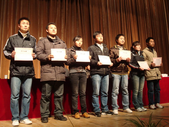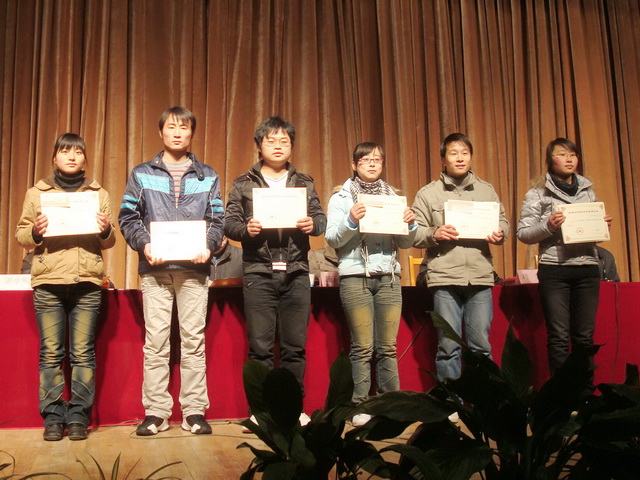 09年2月19日下午四点半,我院隆重召开2008年度国家奖学金、励志奖学金、百好学生颁奖典礼,对获得国家奖学金、国家励志奖学金的同学以及参加全国首届移动电子商务大赛取得优异成绩的集体和个人进行了表彰。学院党委书记施向阳、院长吴大明、院长助理刘宏、团委书记余君琳等出席了本次大会。我系共130名学生和获奖学生代表在系书记和辅导员的带领下参加了颁奖典礼。