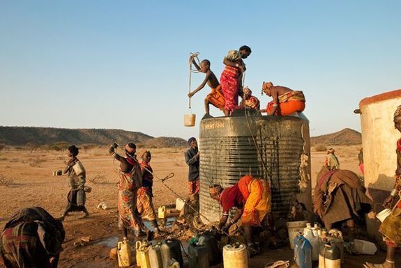 肯尼亚,水滴缓慢地从一个几乎空了的水箱龙头中流出。前一天晚上,政府卡车将这个水箱装满,但是,村民很快把水抽干了,为了得到里面剩余的水,爆发了争吵。