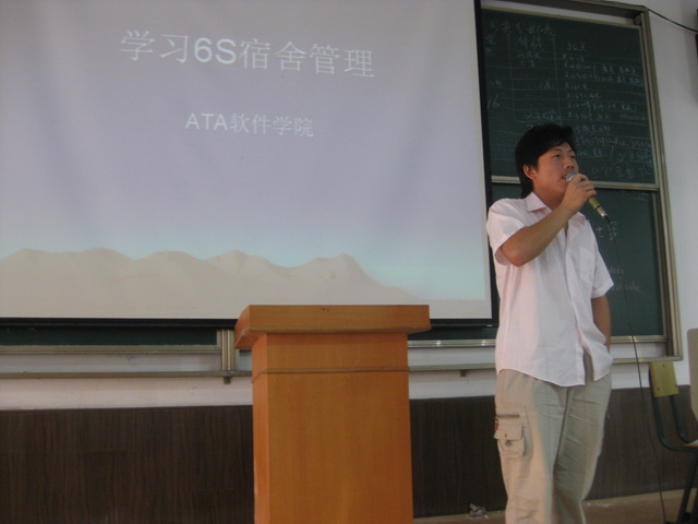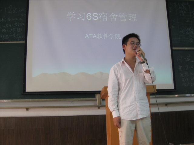 09年9月13日下午,我系在SB110举行新生6S教育活动,共分两场进行。参加教育大会的有09级新生辅导员孔金、赵盼盼老师,团总支书记杨阳老师,07级学生会学干代表还有全体09级新生。大会上,各位学干从不同角度向新生们介绍了6S的重要性,如何申请6S,6S的执行过程中应该注意什么等等,各位老师对新生的6S都提出了要求,希望新生能够尽快迈向6S的进程。