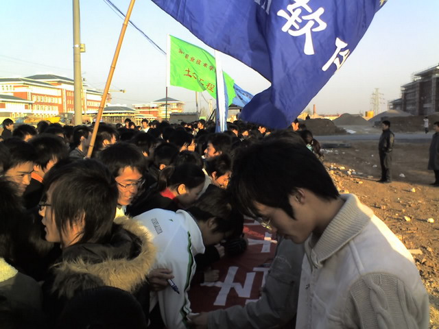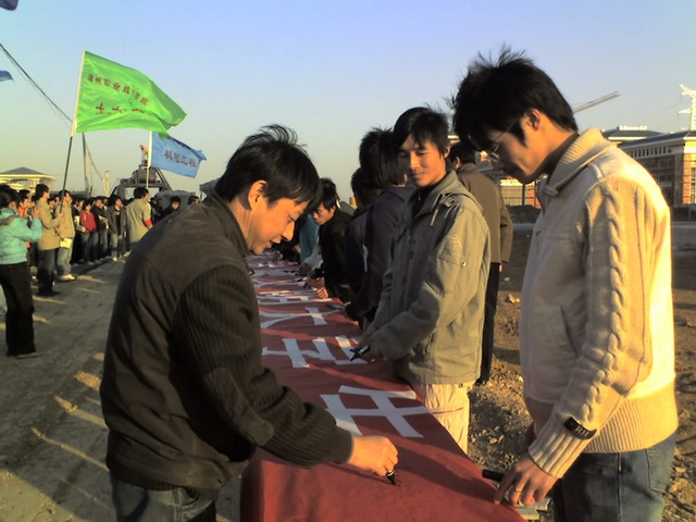 为了更好地让文明行为深入到每一位学生的日常活动中,从思想上和行动上自觉接受并付之于行动,08年11月27日下午4点,学院在新校区举行讲文明,树新风,争做文明大学生——“校园文明行为规范月”签字仪式。我系全体新生在程洪斌书记和辅导员的带领下参加了开幕仪式,同学们郑重地在条幅上签下自己的名字,承诺互相帮助、互相尊重,争做文明的使者,共创和谐的校园。