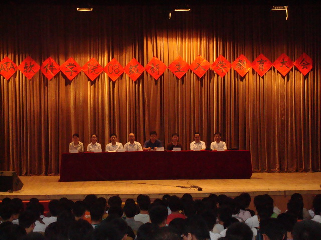 9月13日下午14:30分,ATA软件学院召开08新生入学教育大会,出席大会的有滁州职业技术学院成教处李永泉处长、招生就业处穆松处长、软件学院卜锡滨院长、程洪斌书记、团总支书记、08级辅导员和全体新生。