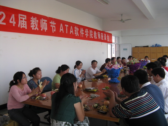 9月10日下午,在第二十四个教师节来临之际,我系召开了教师代表座谈会,学院教务处张处长,洪主任和我系全体教师参加了座谈会。 会议由系主任卜锡滨主持。在自己的节日里,老师们分外喜悦,畅所欲言,气氛热烈。大家一起分享了教学和学生管理的心得体会,一起讨论了当前教育工作中存在的问题和解决办法。老师们纷纷表示,要加强团结,努力学习与工作,不断提高自身素质和业务水平,为我系的发展贡献力量。