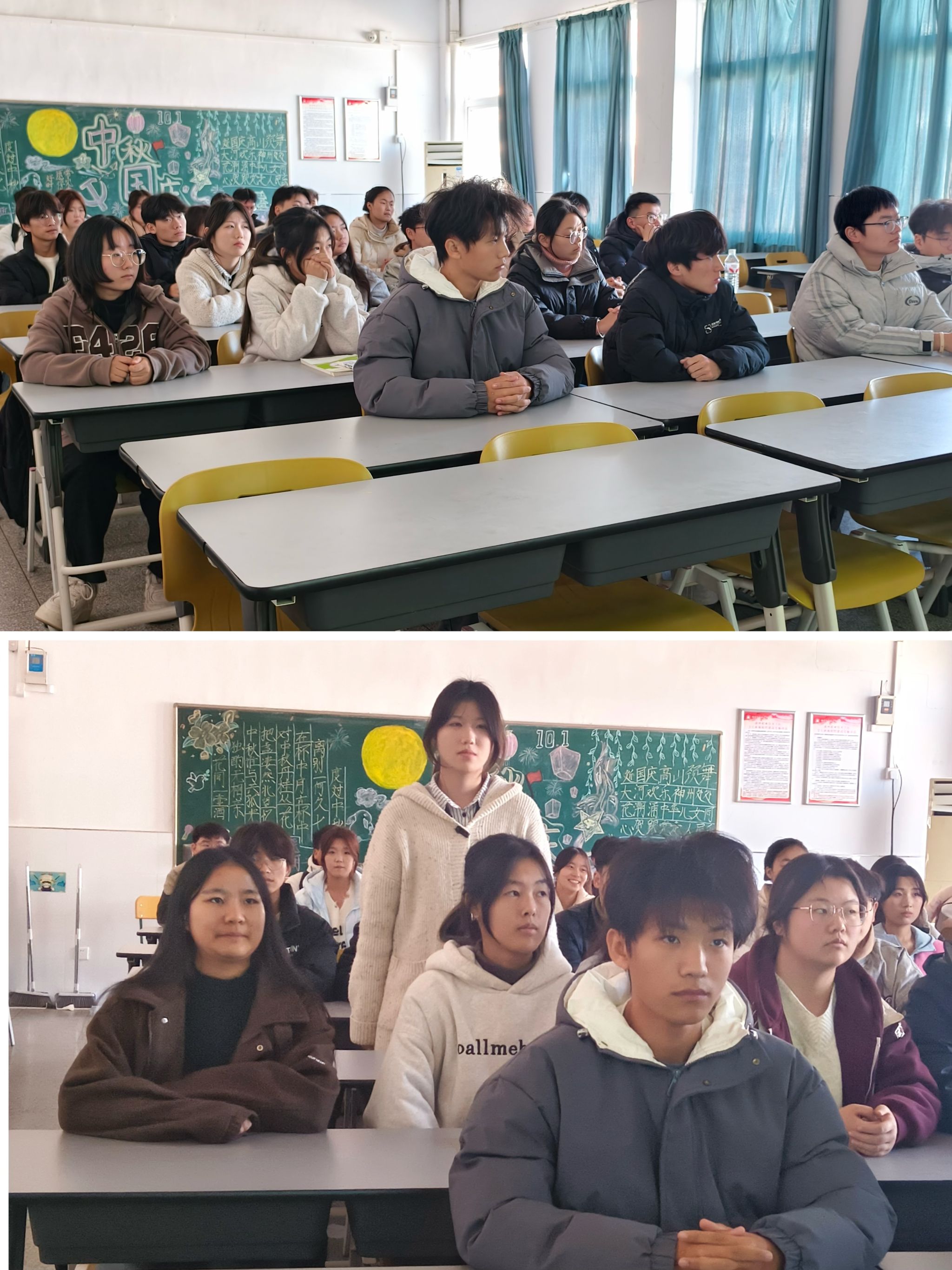 活动伊始,团总支副书记李文豪围绕宪法的基本内容、核心精神及新时代青年的宪法责任展开讲解,阐释了宪法与青年成长、校园生活的紧密联系。活动过程中,同学们专注聆听、认真思考,现场互动环节积极参与交流,展现出对法治知识的浓厚兴趣。