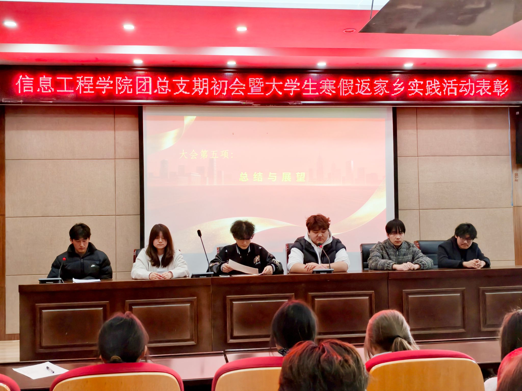 3月12日下午,信息工程学院团总支召开期初会暨大学生寒假“返家乡”实践活动表彰大会。学院团总支全体成员及实践活动优秀代表参加会议,共同总结寒假实践成果,部署新学期重点工作。