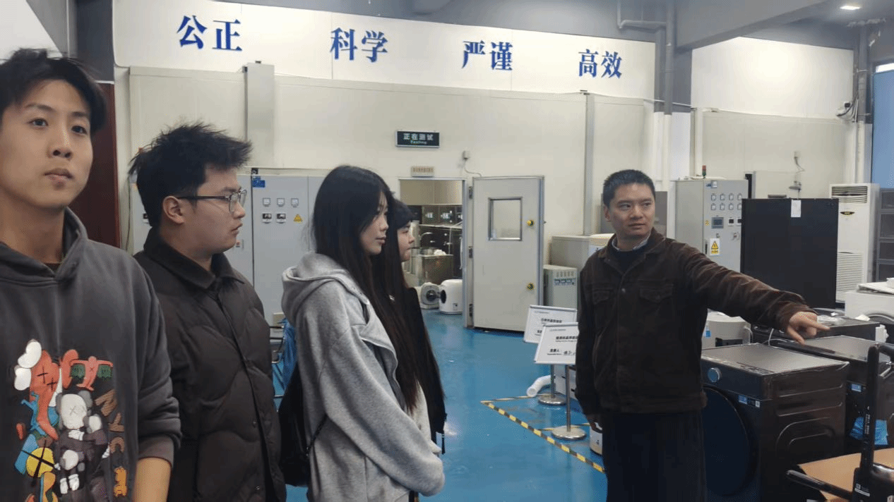 随后何主任带领师生来到家电检测实验室,熟悉家电产品检测流程,学习家电产品检测相关知识,同时为师生系统讲解了家电整机检测的完整流程及关键安全测试标准,极大地提升了学生们的对智能家电技术的兴趣。