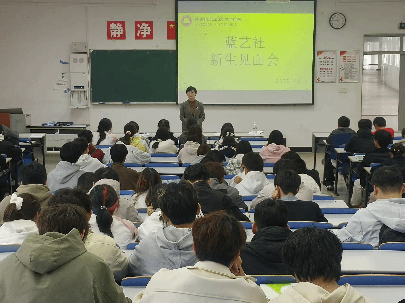 2025年10月30日,传媒与设计学院蓝艺社在北阶104举办了社团新生见面会,此次活动由蓝艺社指导教师刘娟、黄瑞组织开展,社团新成员参加活动。