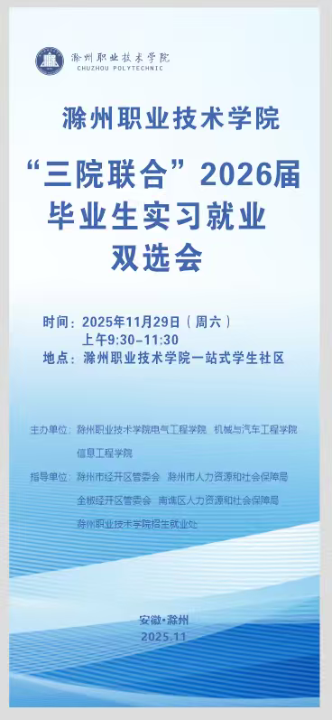 滁州职业技术学院”三院联合“2026届毕业生实习就业双选会通知