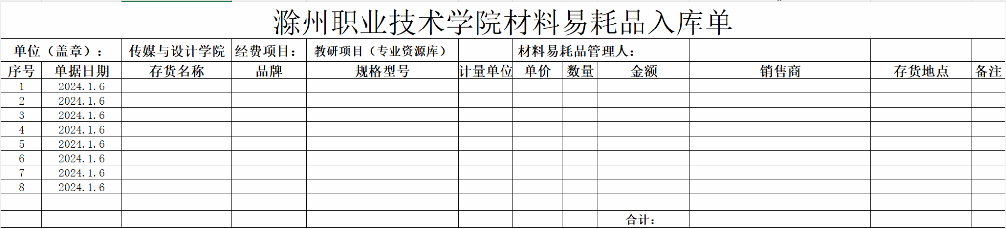 滁州职业技术学院材料易耗品入库单(教研项目 ).xls