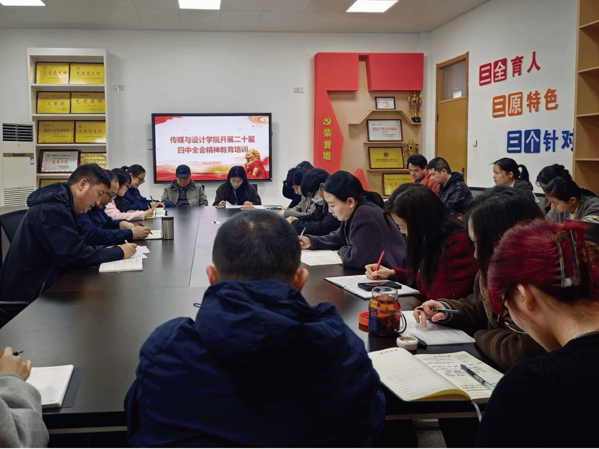 为深入学习贯彻党的二十届四中全会精神,统筹推进学院工作,3月30日下午,传媒与设计学院在德馨楼302会议室召开全体教职工会议,由学院党总支书记王义利主持,全体教职工参会。