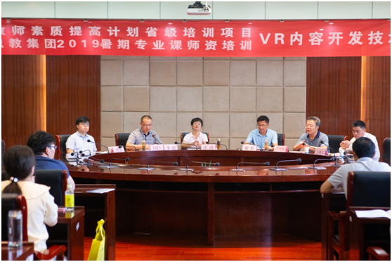 7月30日上午,由我校承办的安徽省高等职业院校教师素质提高计划省级培训项目“VR内容开发技术实战”在综合办公楼11楼会议室举办了开班典礼。安徽省高校师资培训中心领导程恭,院党委委员、副院长江洁,院党委委员、院长助理、招生就业处处长、滁州职教集团秘书长穆松,院党委委员、组织人事处处长李超、信息系主任陈开兵、上海曼恒数字技术股份有限公司区域总监王殿玉及学院相关部门领导出席了开班典礼。