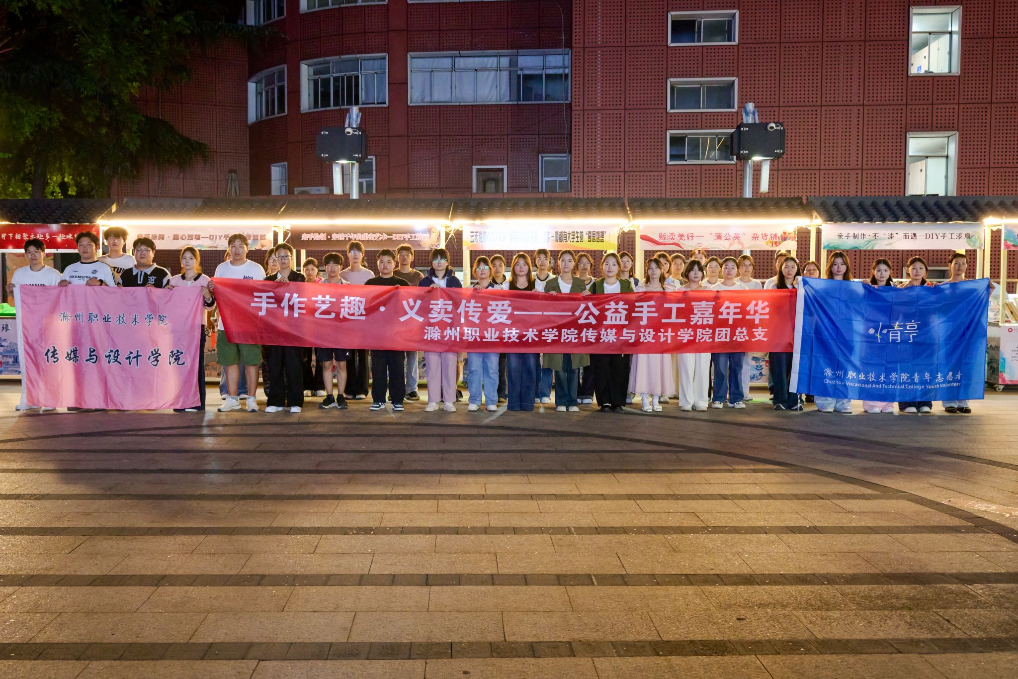 秋夜星辉,灯火璀璨。9月29日晚,由滁州市委人才工作局、共青团滁州市委员会、琅琊区人民政府主办,我校团委、传媒与设计学院等单位共同承办的滁州满天星人才街区2025“庆国庆·迎中秋”青年人才创意集市在悦达889街区火热启幕。我院作为核心承办单位之一,以15个特色展位的亮眼阵容精彩亮相,涵盖非遗传承、公益义卖、教师创新三大板块,校党委书记陈飏等校内外领导莅临现场,企业代表也进行交流。