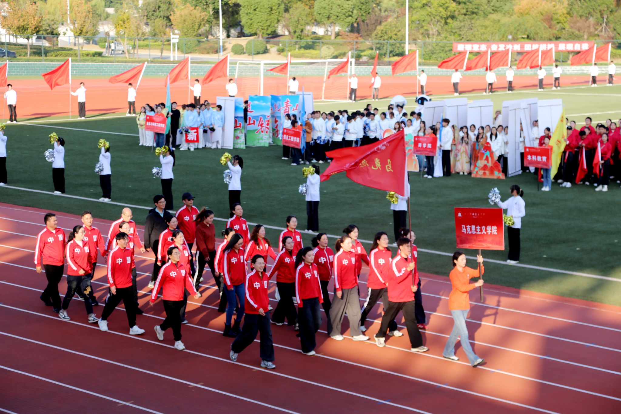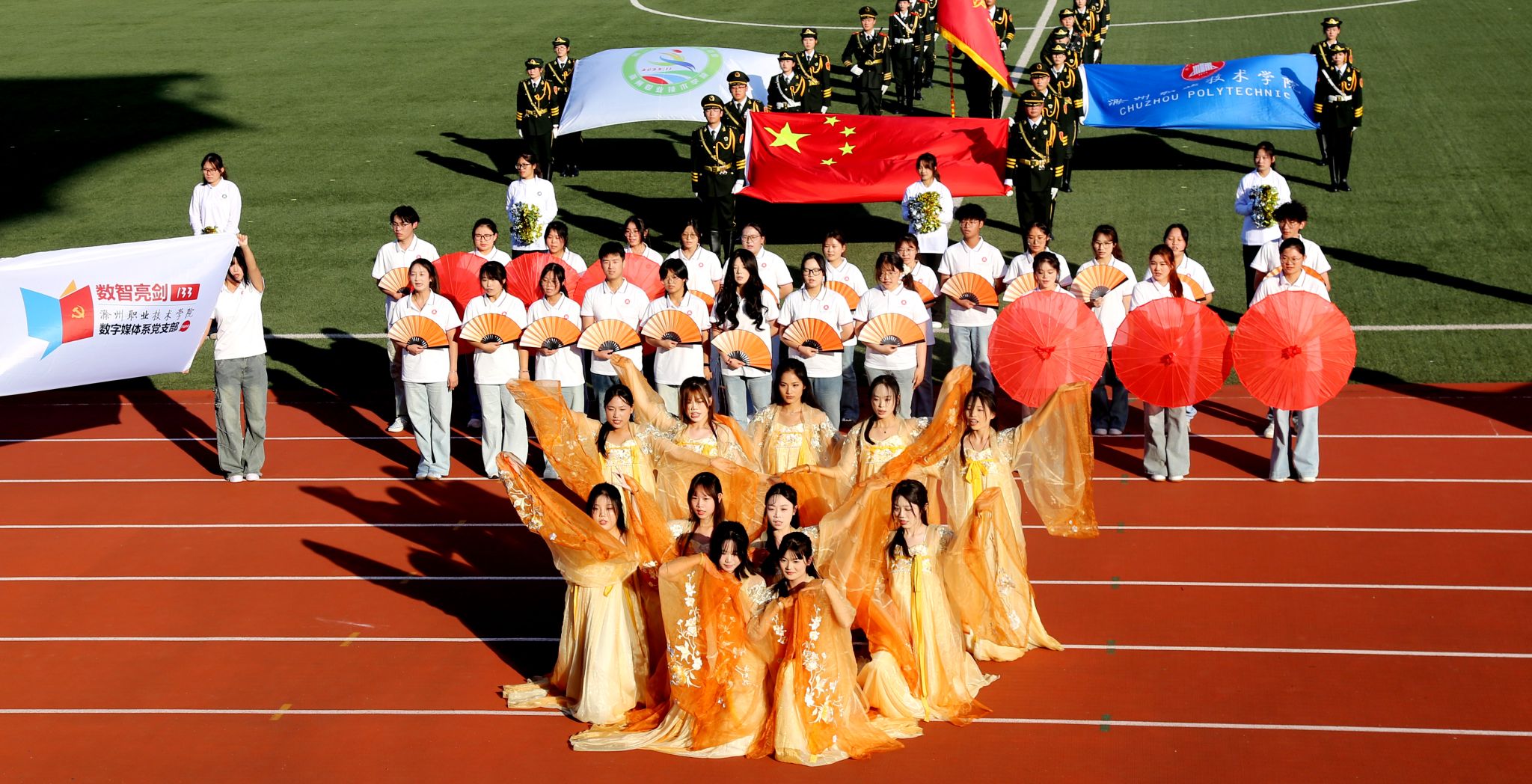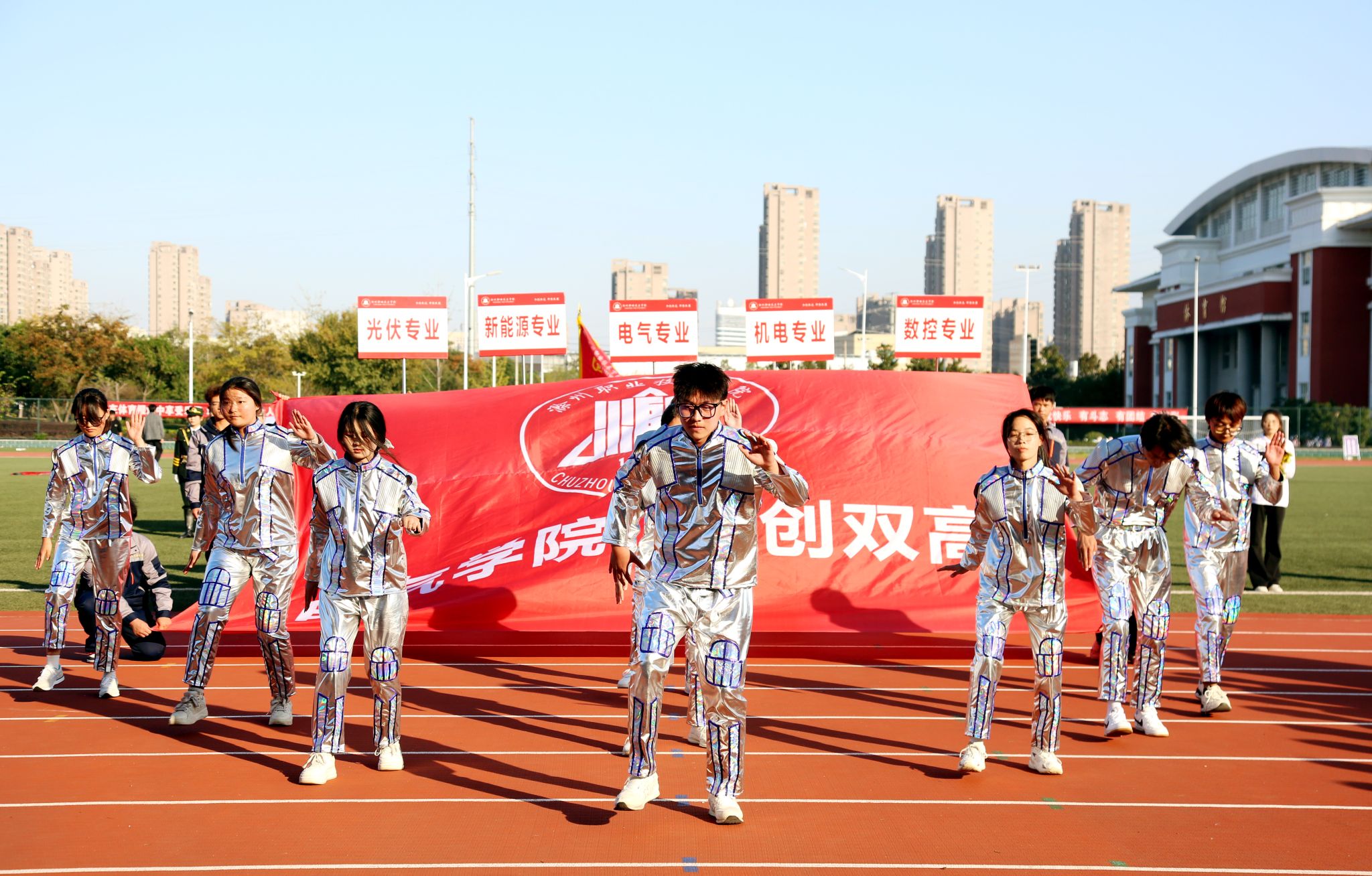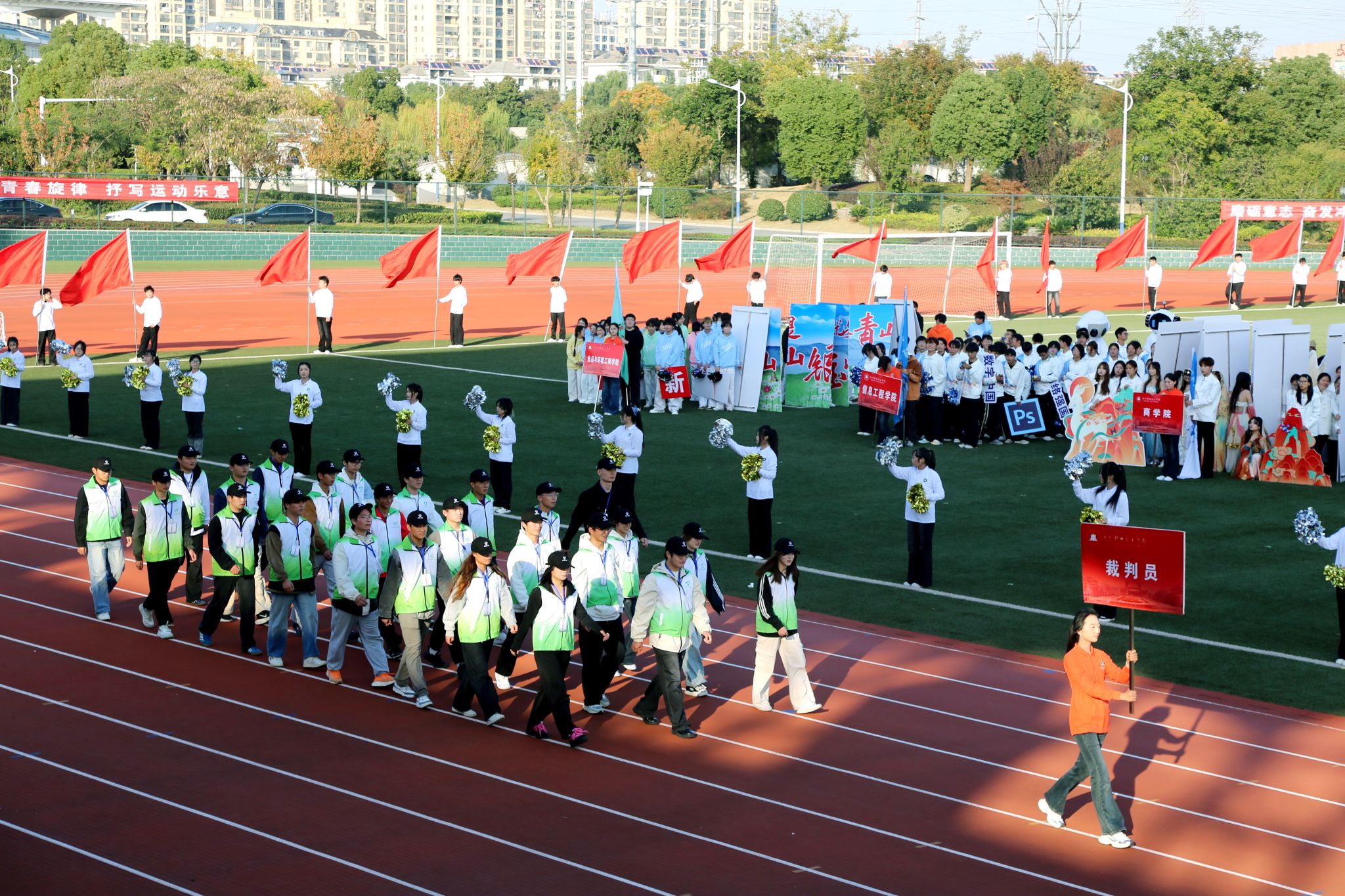 迈着铿锵的步伐,国旗护卫队、校旗会旗队、红旗方阵、裁判员方队以及各学院师生代表队依次入场。各学院方阵通过别出心裁的队列编排与道具展示,生动呈现了各自专业的独特风采与精神内核,诠释了新时代滁职学子的蓬勃朝气和昂扬姿态。