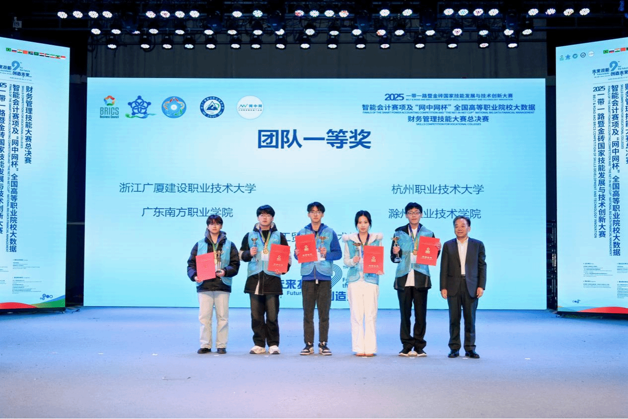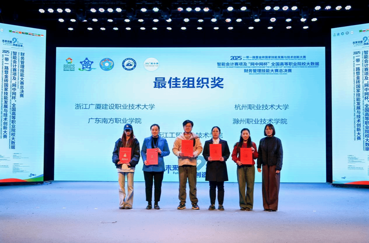 11月22日,从浙江金华传来捷报。在2025“一带一路”暨金砖国家技能发展与技术创新大赛之智能会计赛项及“网中网杯”全国高等职业院校大数据财务管理技能大赛中,我校管理学院代表队,凭借扎实的专业功底和出色的团队协作,从全国27个省份的49支顶尖参赛队伍中脱颖而出,勇夺全国一等奖,我校荣获最佳组织奖。此次获奖展现了我校在数智化财会人才培养方面的卓越实力。