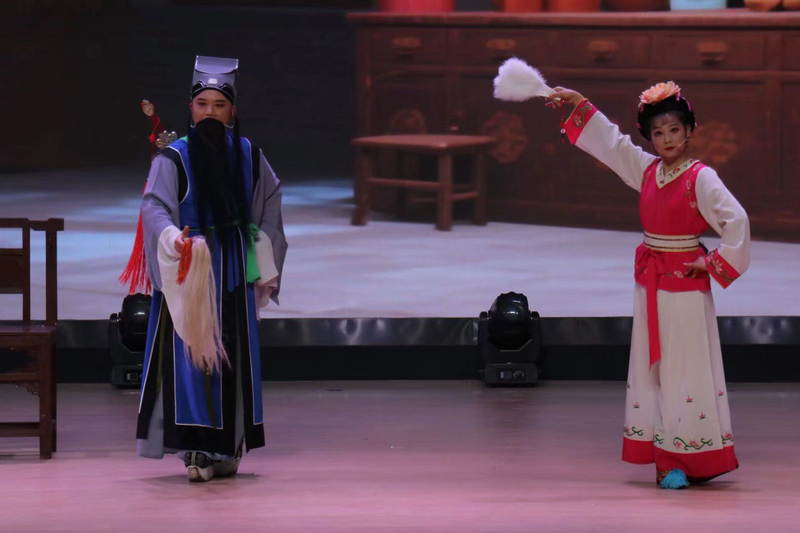 演出在经典折子戏《闹黄府》中拉开帷幕,丑角杨三笑的诙谐演绎,以嬉笑怒骂传递正义之声,瞬间点燃现场氛围。随后,《打猪草》的乡土童趣、《洞房》的跌宕悬念、《鹊桥》的优美意境、《夫妻观灯》的市井烟火、《戏牡丹》的风趣灵动等剧目轮番登场,二级演员贺晓平、余乘鸿、洪石霞及一众三级演员、优秀青年演员以精湛的唱功、细腻的表演,将黄梅戏的婉转韵味与艺术魅力展现得淋漓尽致,每一段唱腔、每一个身段都赢得现场师生阵阵掌声。
