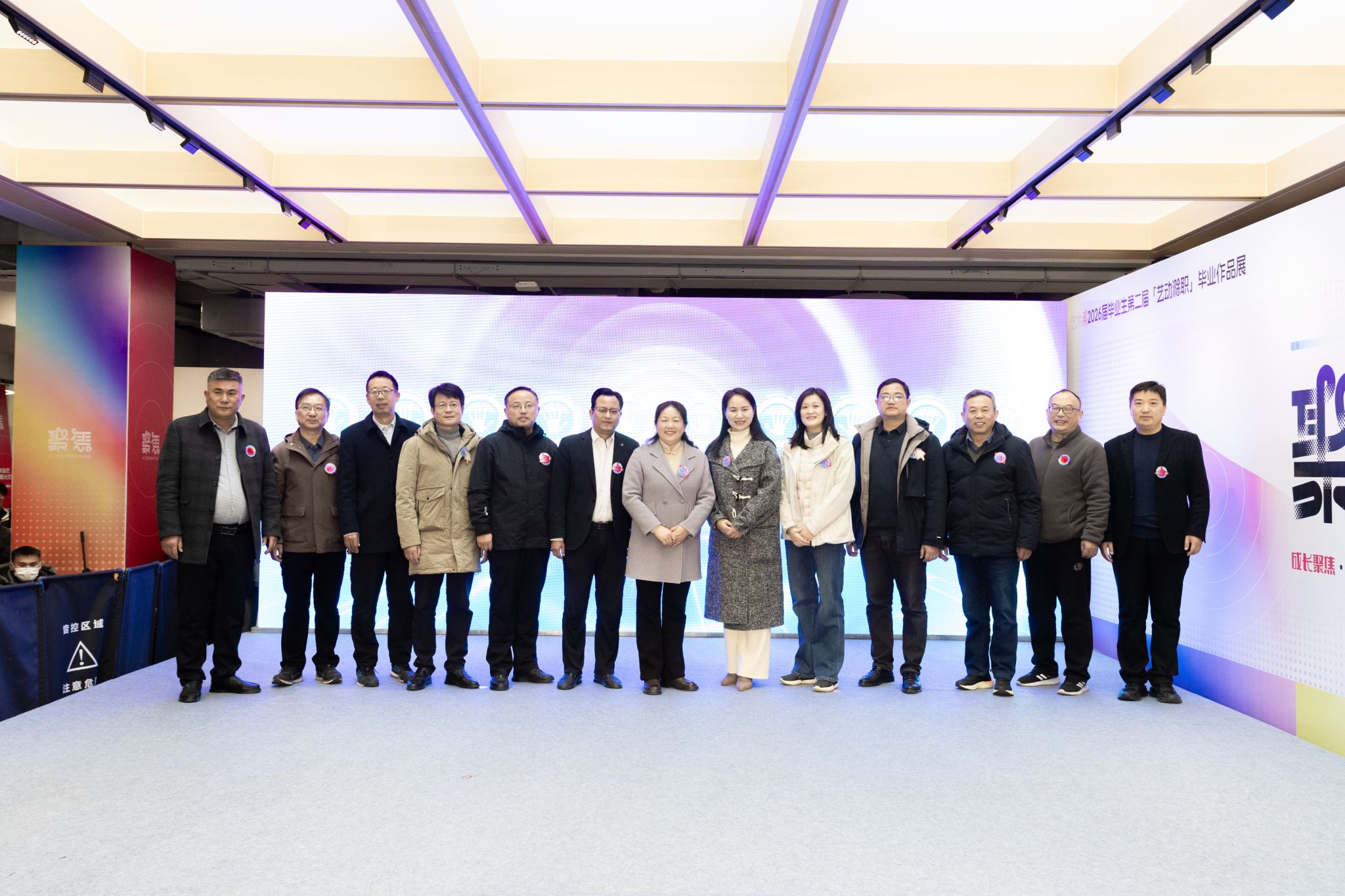上午10时,开幕式正式开始。校党委书记陈飏,党委委员、副校长苏有良,党委委员、工会主席李平权,党委委员、宣传统战部部长王冬,党委委员、组织人事处处长王宇,琅琊区文化和旅游局局长石慧,滁州市全椒县文学艺术界联合会党组书记、主席占书生,全椒县文化和旅游局党组成员副局长蒋晋,全椒县电视台台长、融媒体中心主任何方,滁州市琅琊区文化馆馆长杨在虎,滁州市全椒县文化馆馆长孙莉、副馆长王亮,吴敬梓纪念馆馆长李亨平,县文化旅游局办公室主任荣凯奇,全椒县融媒体中心新媒体部主任黄其富、短视频部主任李媛媛,全椒音乐学会主席盛莉,以及来自滁州建筑装饰协会、滁州印刷发行协会、龙利得智能科技等数十家行业组织与合作企业代表应邀观展,校团委、学生工作处、招生就业处等相关部门参加活动。与会领导与嘉宾共同登台,在激动人心的倒计时后,共同点亮了开幕仪式的大屏幕,宣告毕业设计展正式启幕。