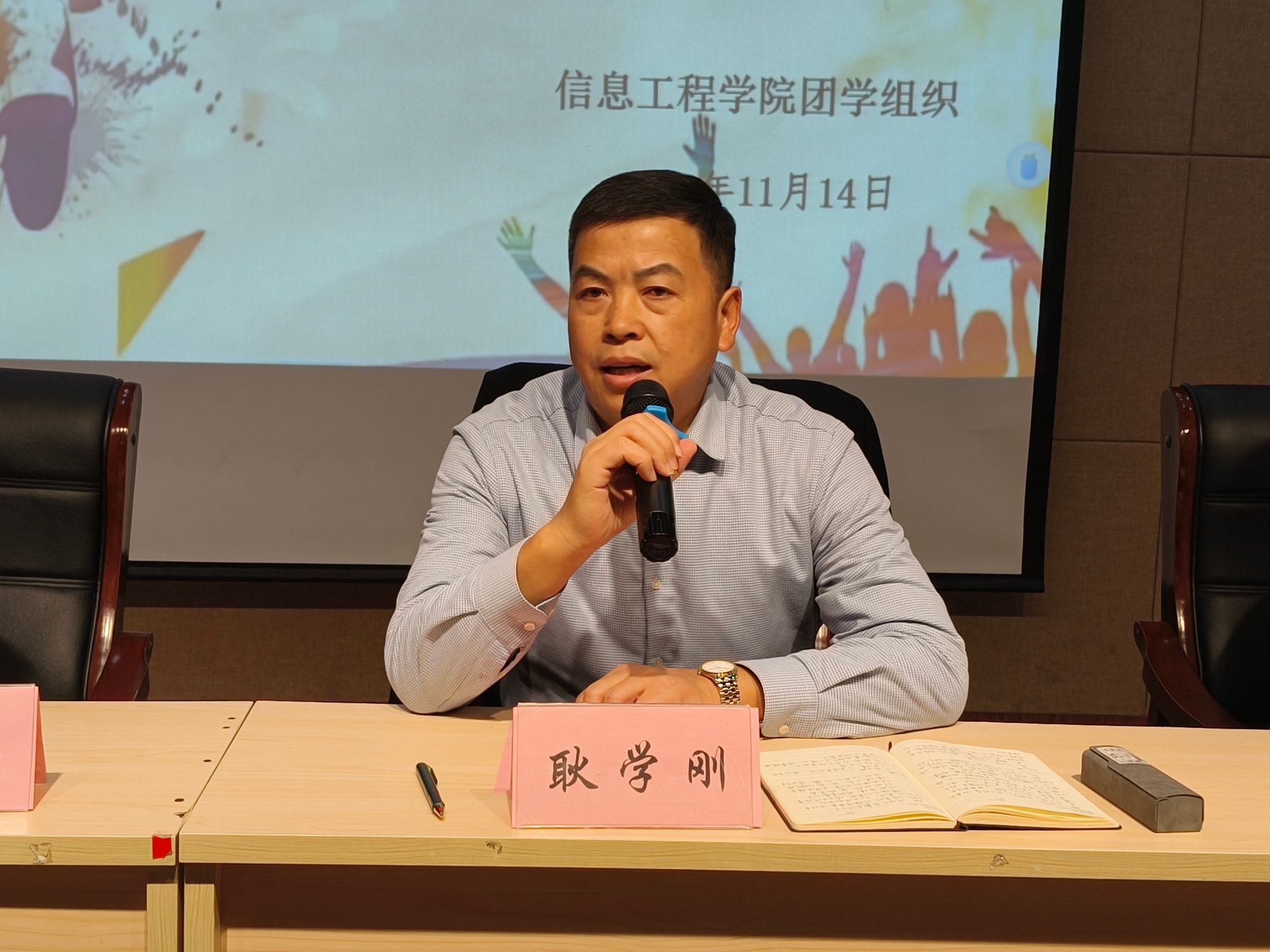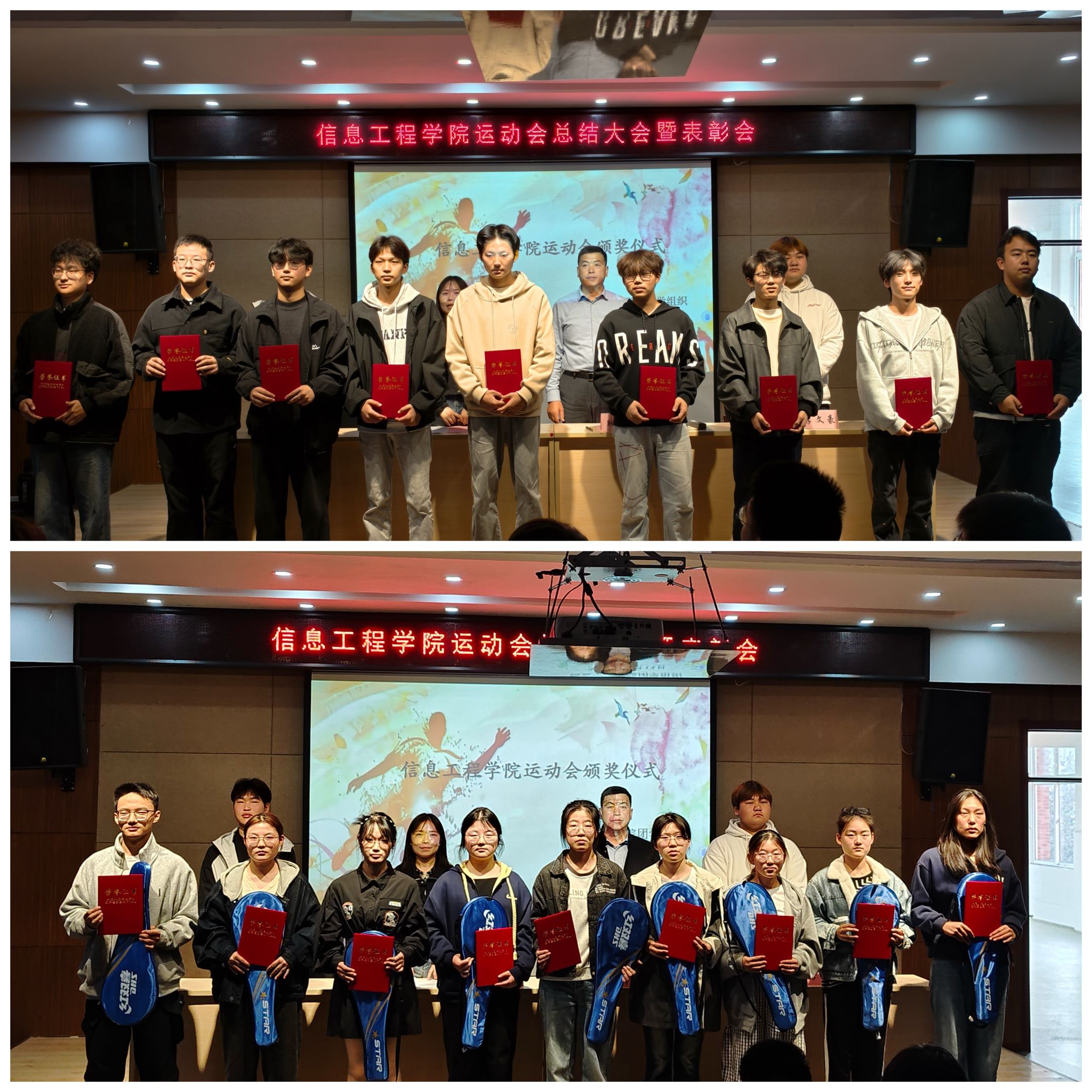 为弘扬体育精神,表彰先进典范,11月14日,信息工程学院于南阶203教室召开运动会总结表彰大会。学院党总支书记耿学刚、团总支书记朱睿、获奖运动员、志愿者及学生代表共同参会。