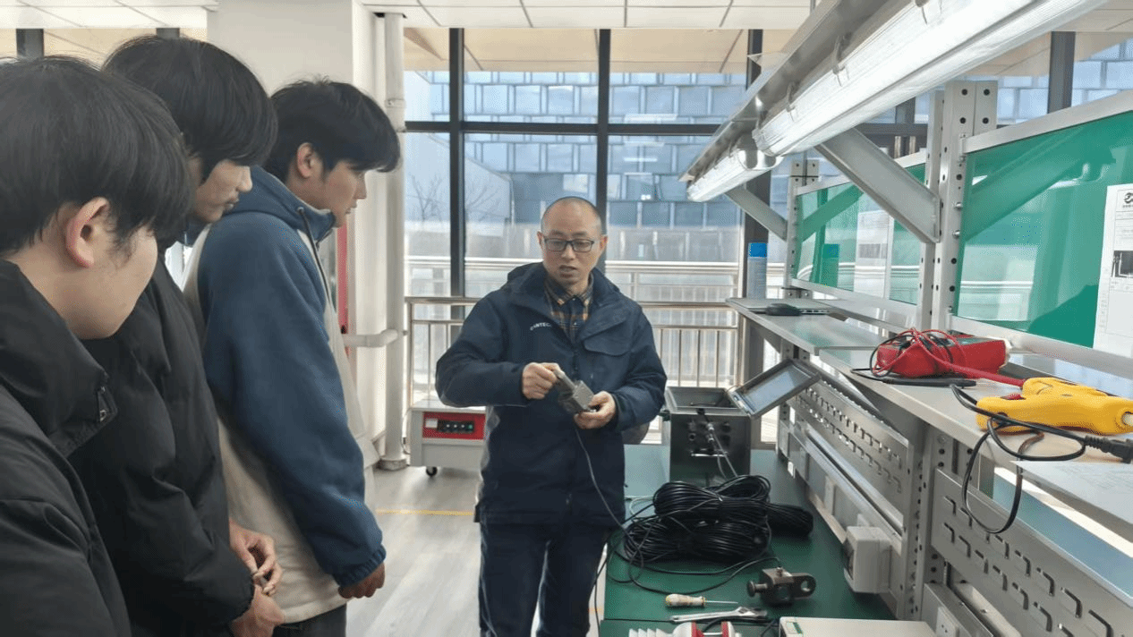 随后在企业工程师的带领下,双方来到生产实验室,参观实验生产设备,学习安全操作规范,了解生产过程。许经理重点向学生演示了输电线路故障抓拍设备的使用,让学生切身体会到物联网应用技术在电力系统监测和维护中的重要作用。
