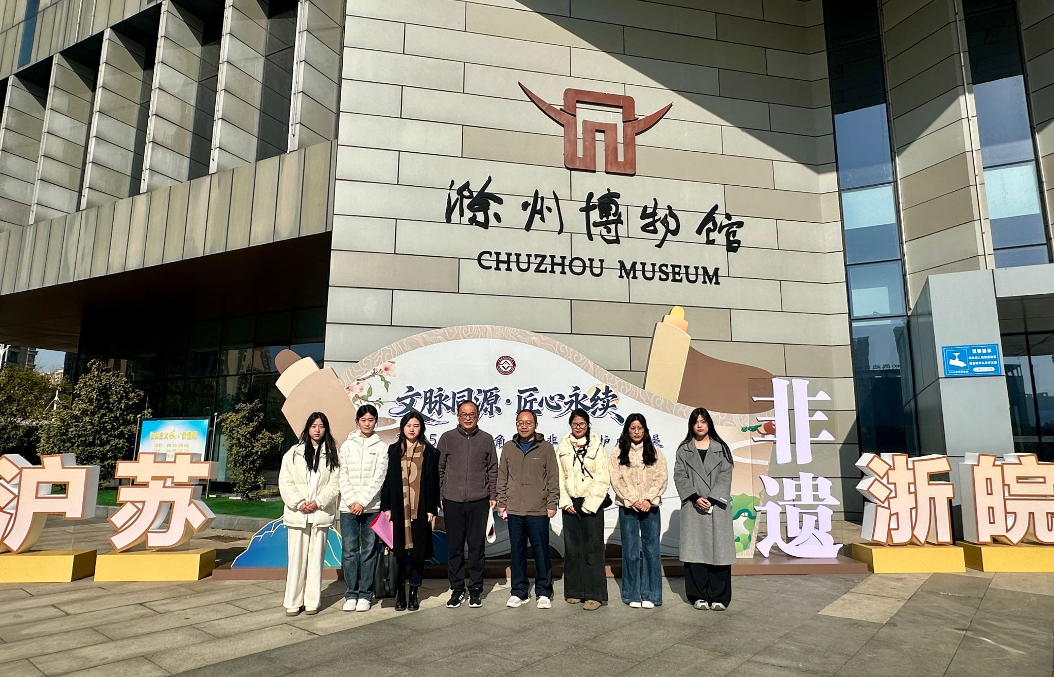 2025年11月26日,由安徽省、上海市、江苏省、浙江省非物质文化遗产保护中心联合主办,滁州市文化和旅游局执行主办的“文脉同源・匠心永续”长三角地区非遗保护成果展,在滁州市博物馆隆重开幕。我校传媒与设计学院院长闻建强带队参加此次活动。