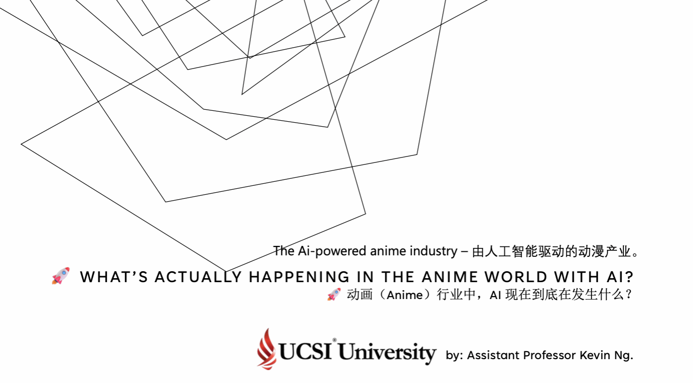 12月14日,Kevin Ng.教授以“动画(Anime)行业中,AI 现在到底在发生什么?”为题,指出未来动画师将成为演算法的导演,同学们要学会驾驭AI,优先学习AI在工作室环境中真正可用的整合型技能。