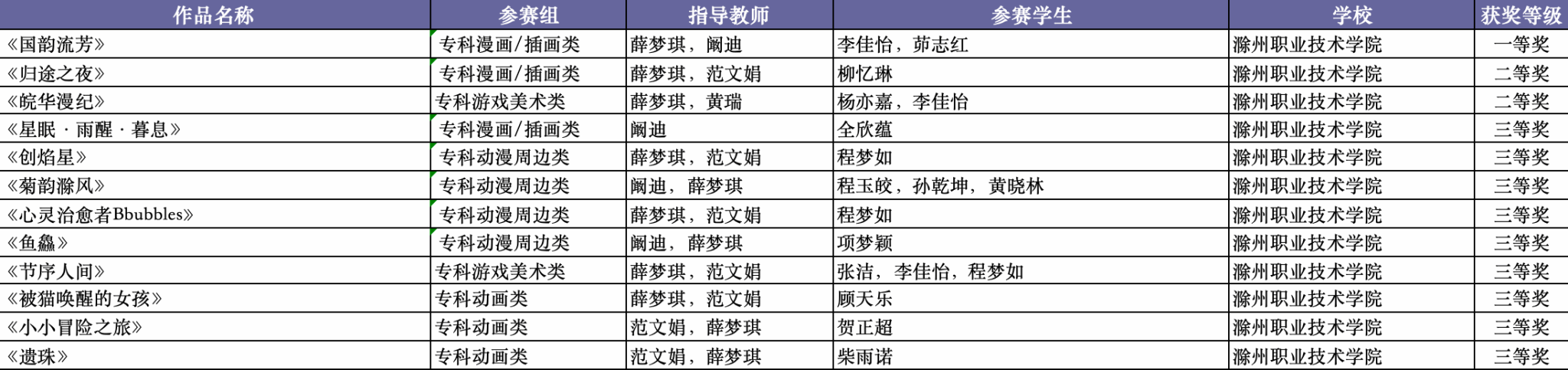 近日,2025年安徽省大学生原创动漫大赛拟获奖名单正式揭晓。传媒与设计学院设计艺术系师生团队表现优异,斩获一等奖1项、二等奖2项、三等奖9项,指导教师薛梦琪被安徽省教育厅授予“优秀指导教师”。