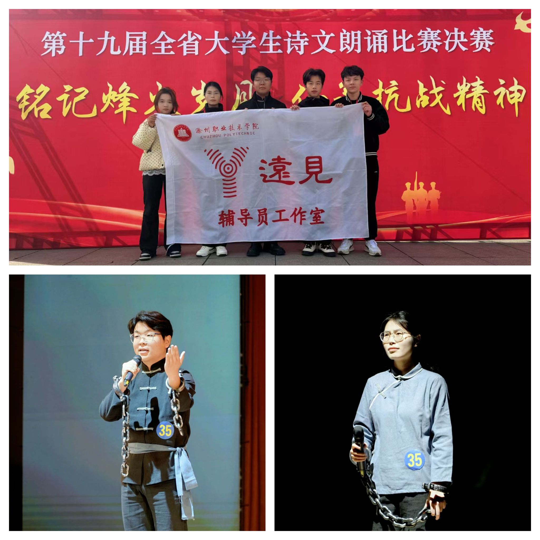 自2023年以来,食环学院辅导员工作室以“声传经典、文润心灵”为理念,深耕美育育人阵地,已连续举办多届校园朗诵大赛并在省级赛事中持续绽放光彩。2023年,工作室一举拿下中华经典诵读大赛安徽省一等奖及优秀指导教师奖,实现赛事成绩开门红;同年起,工作室原创朗诵作品《小岗》《等你回家》《我不叫马路大》连续三年入围安徽省大学生诗文朗诵大赛决赛并获奖;2024年,辅导员工作室乘势而上,斩获安徽省大学生诗文朗诵大赛二等奖、中华经典诵读大赛安徽省三等奖;2025年再攀高峰,在以“戏润青春舞台,诵响时代风采”为主题的安徽省大学生戏剧与朗诵专项展演中勇夺一等奖,彰显持续精进的艺术水准。