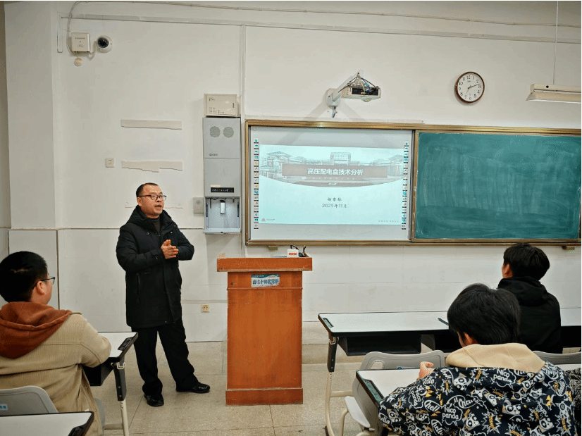 为了助力新能源专业学生夯实专业核心知识,深化对专业的认知,机械与汽车工程学院在五号教学楼308教室举办“高压配电盒技术专题”学术讲座。本次讲座由院长杨章林主讲,全体2025级新能源汽车技术1班学生参加。