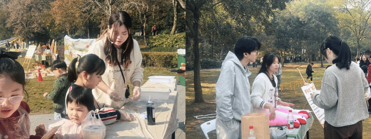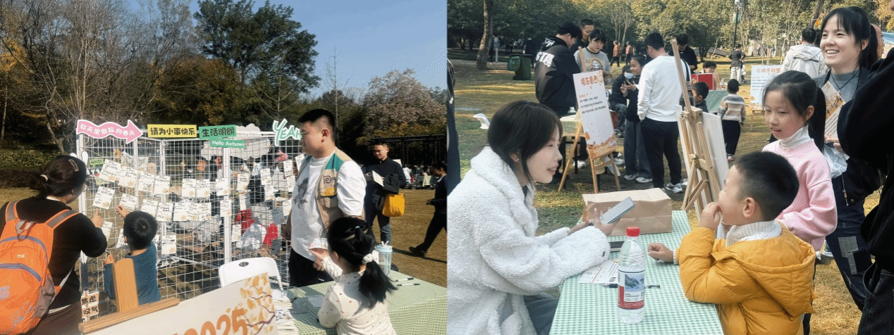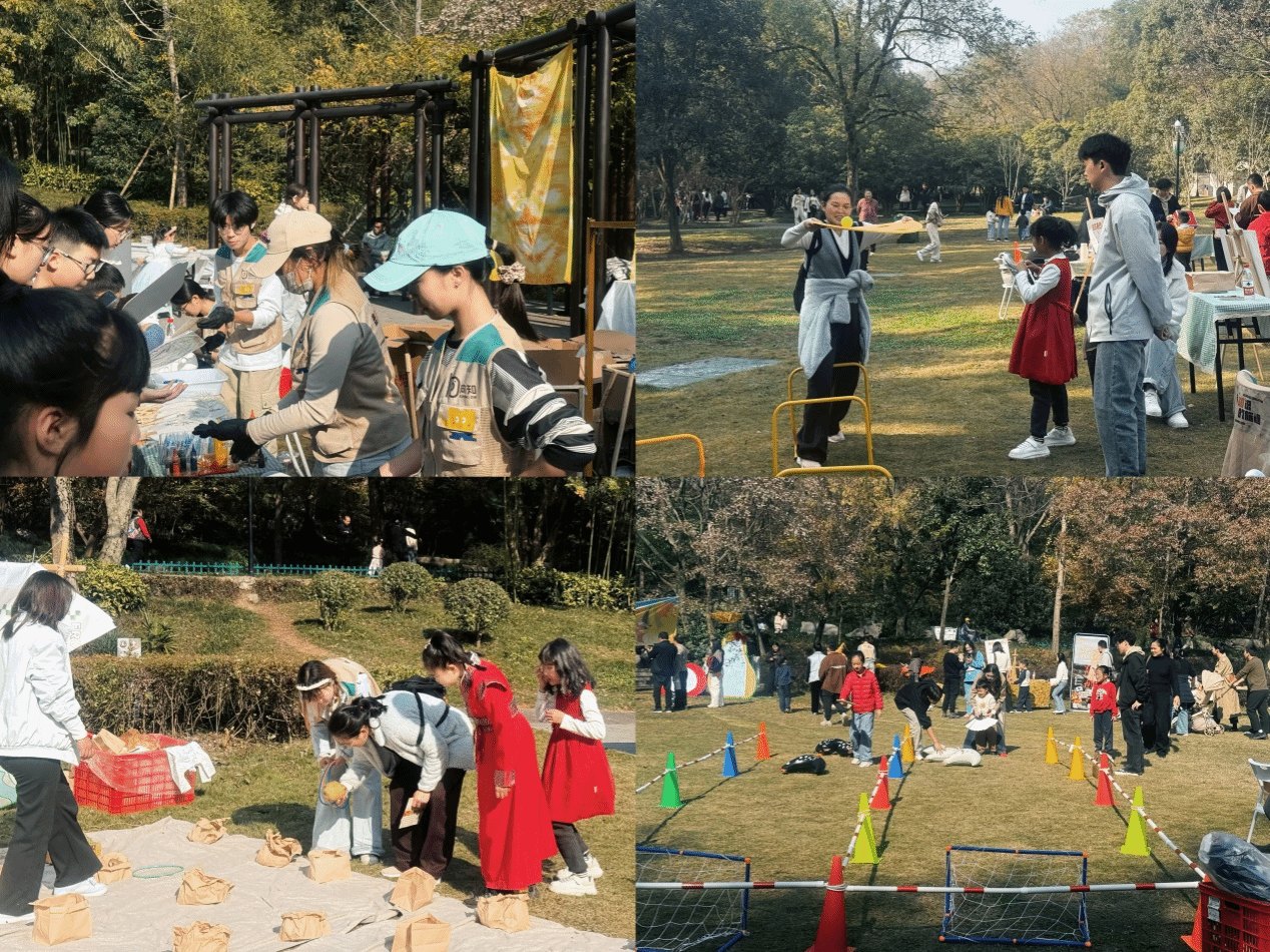 活动中,志愿者分工明确、各司其职,坚守在活动的各个核心区域。沉浸式手作工坊中,鲍元旗、田尔翔、牛雅婷等同学协助整理漆扇、扎染布料、石膏娃娃等材料,耐心指导参与者掌握创作技巧,为定格秋日浪漫提供贴心支持;趣味闯关游戏区里,毛远洋、胡中豪、吴健、舒晓菁等同学化身“快乐引导员”,清晰讲解赶鸡入笼、焦头烂“鹅”、听歌辩曲等游戏规则,细心维护现场秩序,确保游客畅享游戏乐趣;轻松休闲项目区域,王欣然等同学顶着烈日有序组织蔬果套圈、刮个乐子等活动,汗水浸透衣衫也未曾停歇,始终以热情笑容为游客送上礼品、传递暖意;社交打卡区与指引处,贺家乐等同学则为游客提供咨询、拍照等服务,让大家在琅琊山秋色中畅玩无忧、尽兴而归。