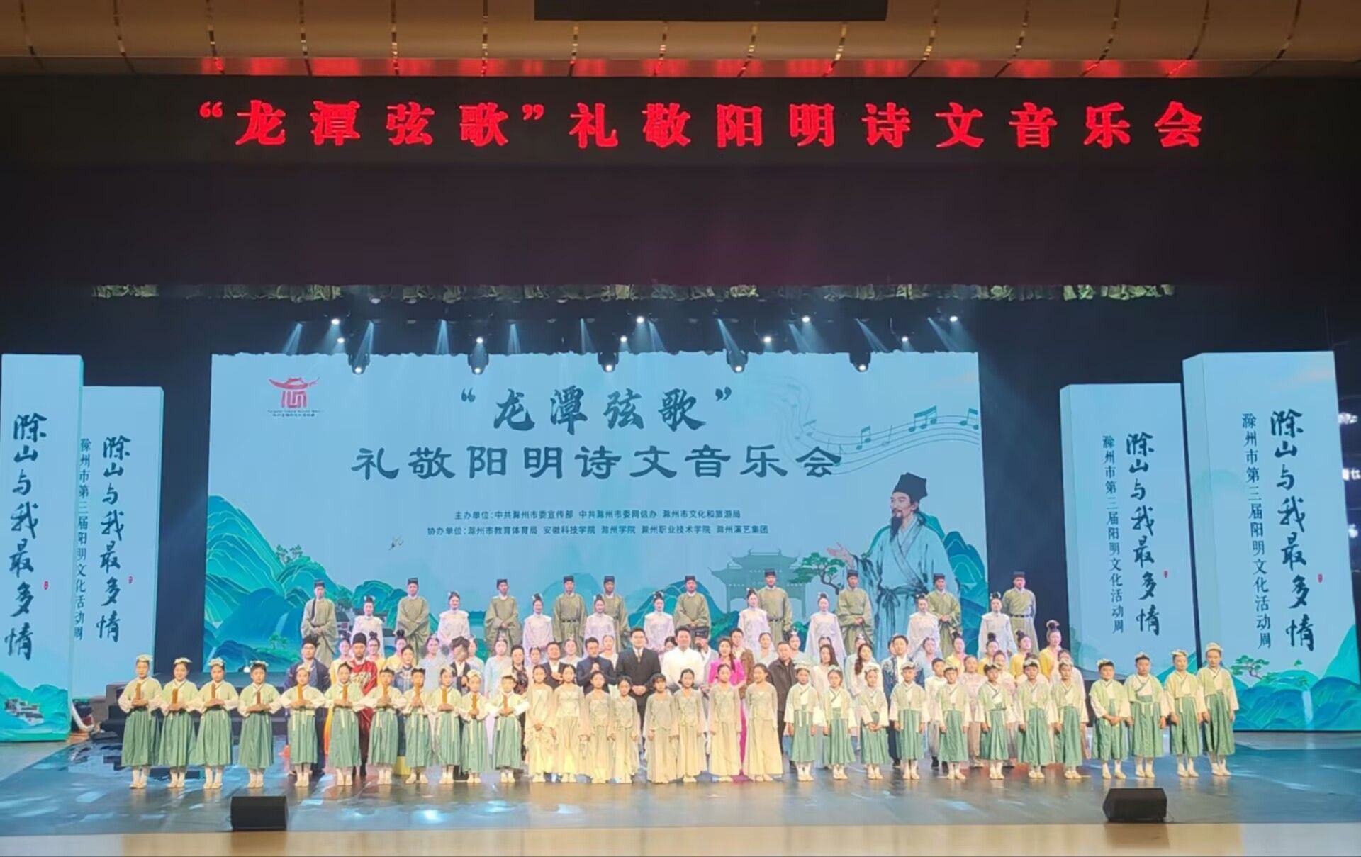 2025 年 11 月 22 日,滁州市图书馆 “醉翁亭讲坛” 邀请南京大学周群教授主讲《阳明滁州论学的二重影响》。周群教授深耕中国古代哲学与文化研究,以 “知行合一”“致良知” 为切入点,结合史料与当代案例,深入浅出阐释阳明文化的脉络、内核与现实意义,内容兼具学术深度与实践价值。次日,“龙潭弦歌”礼敬阳明诗文音乐会在滁州大剧院举行。音乐会紧扣王阳明在滁诗文创作脉络,以朗诵、舞蹈、情景剧等艺术形式再现先贤悟道历程。《讓泉秋月》《龙潭夜坐》《我心光明》等节目,从不同维度传递传统文化的时代生命力,让阳明心学以艺术化形式从书本中“活”了过来。