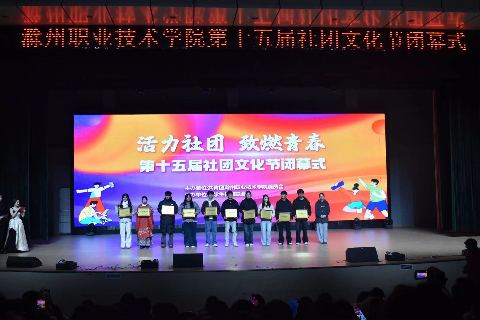晚会同时揭晓并颁发了2025年度滁州职业技术学院“活力社团TOP10”奖项,表彰了在校园文化建设中表现突出的学生社团。