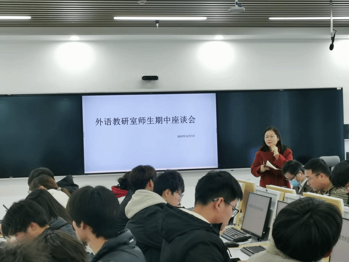 为持续提升我校公共英语、日语课程教学质量,把脉学生学习需求,提高学生学习积极性,12月3日下午,基础教学部外语教研室在综合楼201语音室召开本学期师生座谈会。外语教研室教师和全校各学院五十余名学生代表齐聚一堂,围绕本学期公共英语、日语课程内容、教学方法、课堂模式等话题进行了面对面交流。