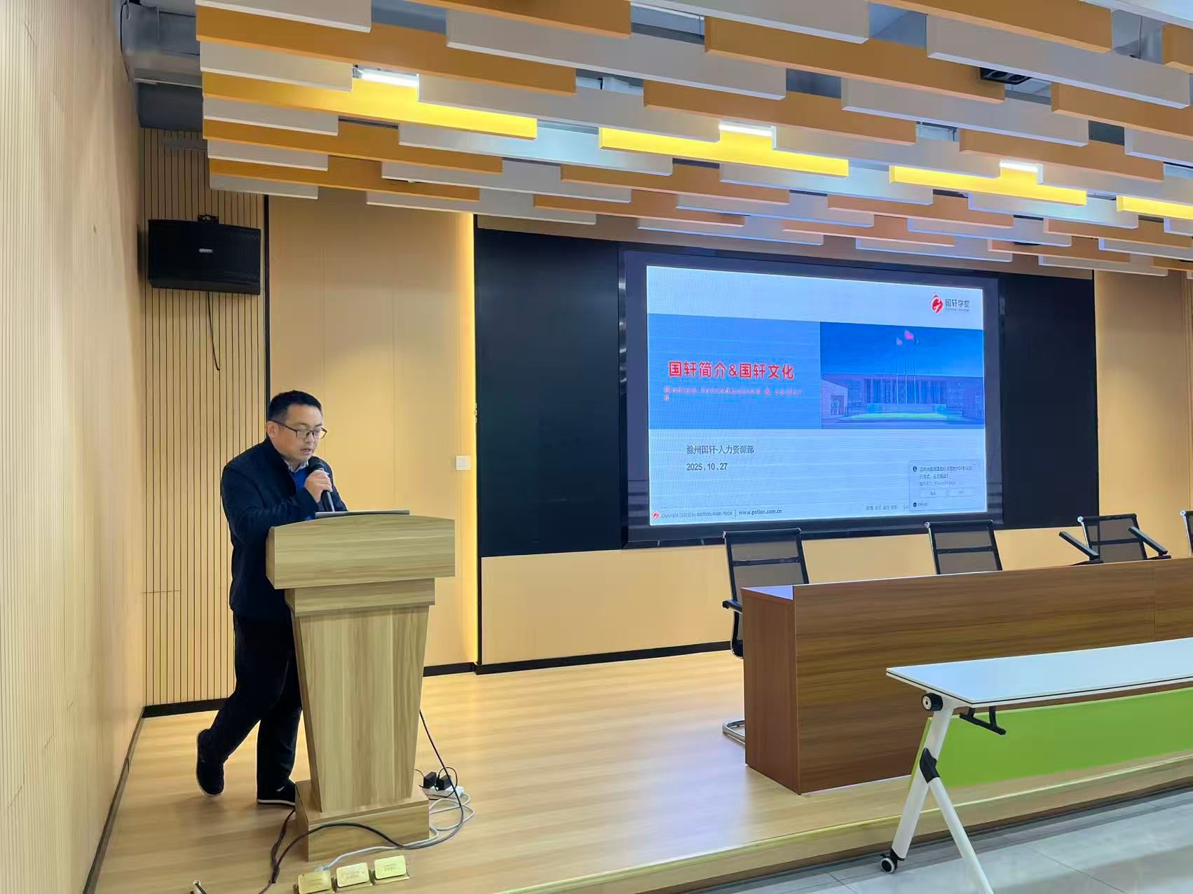 上半场宣讲由国轩新能源招聘负责人黄国胜主持。黄国胜为毕业生详细介绍了国轩高科的企业文化、业务开展情况、招聘计划及薪资福利待遇。结合公司业务,黄国胜重点介绍了本次校招计划和公司员工培养体系。之后,招就处副处长徐云龙发表动员讲话,勉励大家在严峻的就业形势下更要顺势而为,积极投身安徽省和滁州市战略性新兴产业,在滁州新兴产业崛起中追寻自己的梦想。