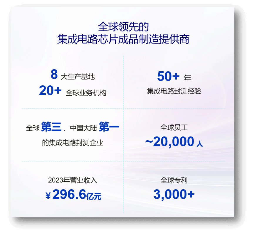 长电科技(滁州)有限公司是长电科技股份有限公司的全资子公司。于2012年正式投产,公司占地257亩,总投资超30亿元,建筑面积12万平方米,净化厂房约3.8万平方米,现有员工约2100人,其中技术人员超450人,主要从事中小功率半导体分立器件及IC集成电路等产品的封装、测试,产品广泛应用于IT、数码、通讯、电器、自动化设备等行业,能为客户提供芯片测试、封装设计、封装测试等全套解决方案,目前已形成年产350亿只半导体元器件生产能力。公司先后被评为滁州市“十强企业”“纳税十强企业” 和“安全文化建设示范单位”,荣获滁州市“市长质量奖”,是“安徽省技术领先示范企业”和“安徽省民营企业进出口百强”企业,也是国内最大的半导体封测生产基地之一。