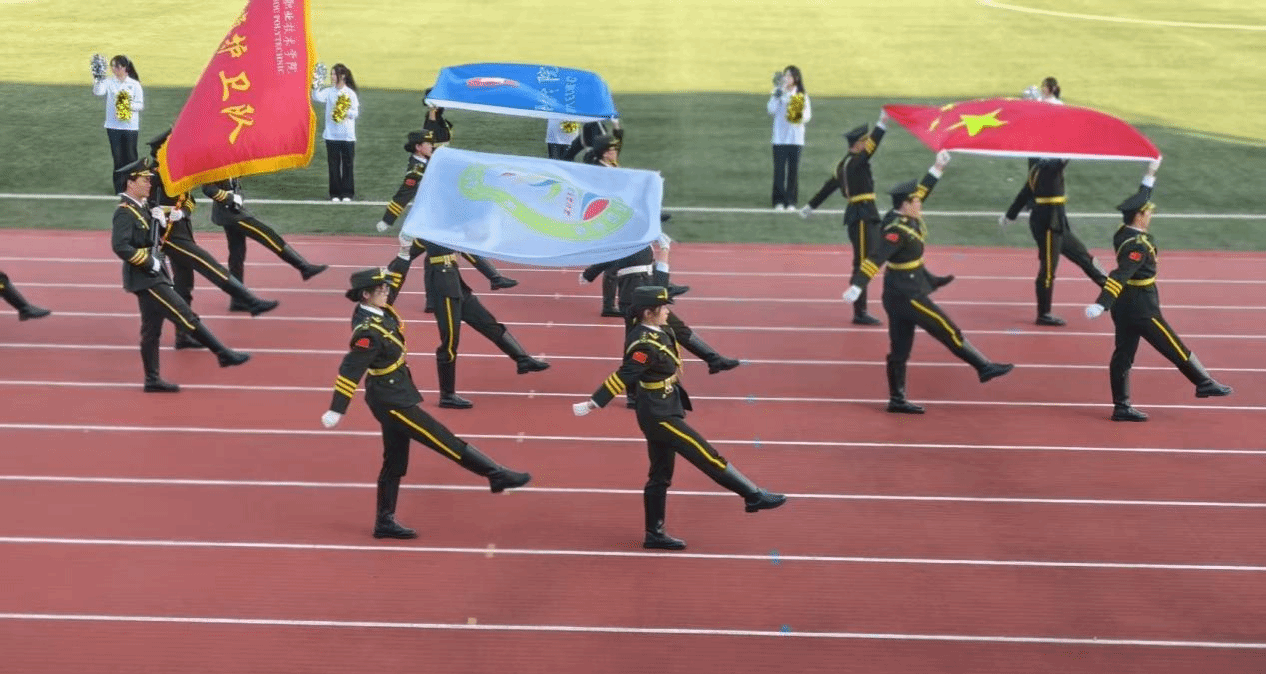 随着《运动员进行曲》的激昂奏响,国旗护卫队庄严入场。随后,各学院方队创意尽显,机械与汽车工程学院学子表演军体拳,刚劲有力、整齐划一,展现新时代青年担当。