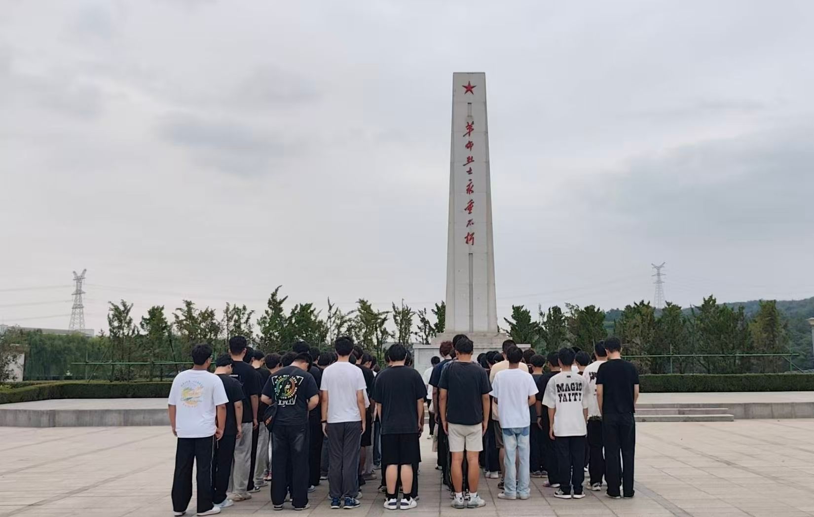 活动当日,师生们怀着崇敬的心情来到烈士陵园。在学院学生代表李焜的主持下,纪念活动正式拉开帷幕。低沉的哀乐声中,纪念活动进入默哀环节。全体师生低头肃立,默哀一分钟。时间仿佛在这一刻静止,每个人的心中都充满了对先烈的追思 —— 正是这些无名英雄们在烽火岁月中挺身而出,用鲜血与生命换来了如今的和平与安宁。默哀结束后,师生代表们依次上前,手持洁白的菊花,轻轻放在纪念碑基座旁。一朵朵菊花,象征着纯洁与敬意,也承载着新时代青年对先烈精神的传承之志。