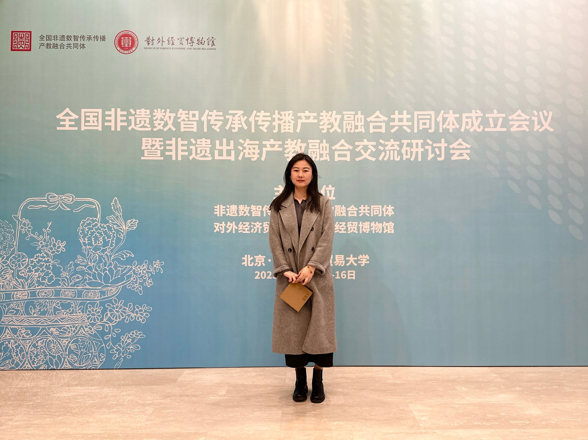 2025年11月14日至16日,全国非遗数智传承传播产教融合共同体成立会议暨非遗出海产教融合交流研讨会在北京对外经济贸易大学召开。我校传媒与设计学院数字媒体系主任李雯雯应邀参会。